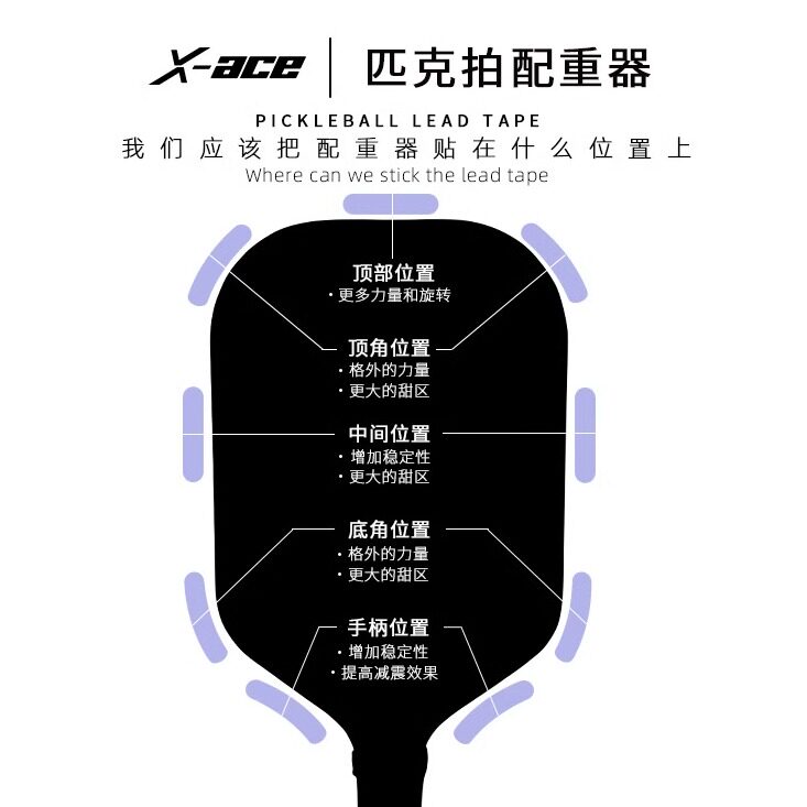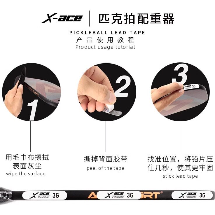 📚 X-ACE匹克球球拍铅片铅条皮克球拍配重器3g铅片平衡Pickleball