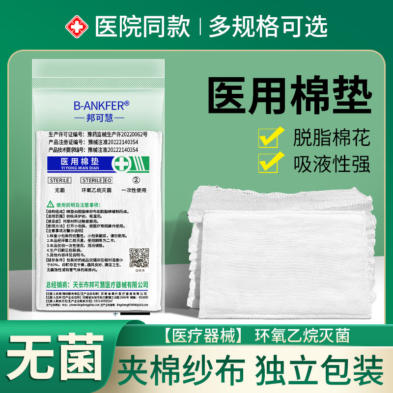 📚 医用棉垫纱布块无菌片贴伤口换药夹棉医疗一次性单独包装棉大尺寸
