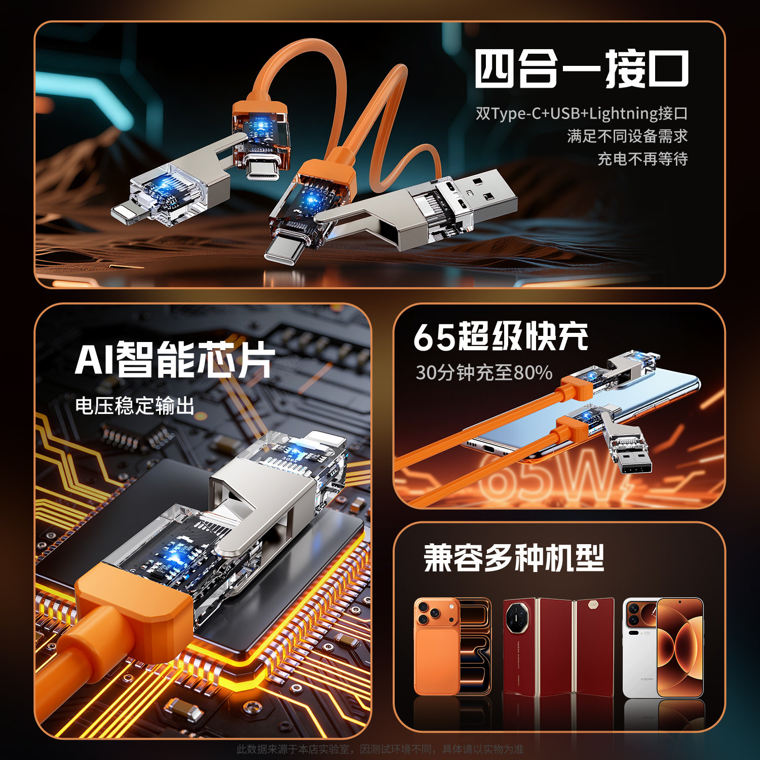 📚 魔景氚流双口充电器适用苹果17华为小米手机typec四合一数据线套装pd快充1516promax充电器插头14正品平板