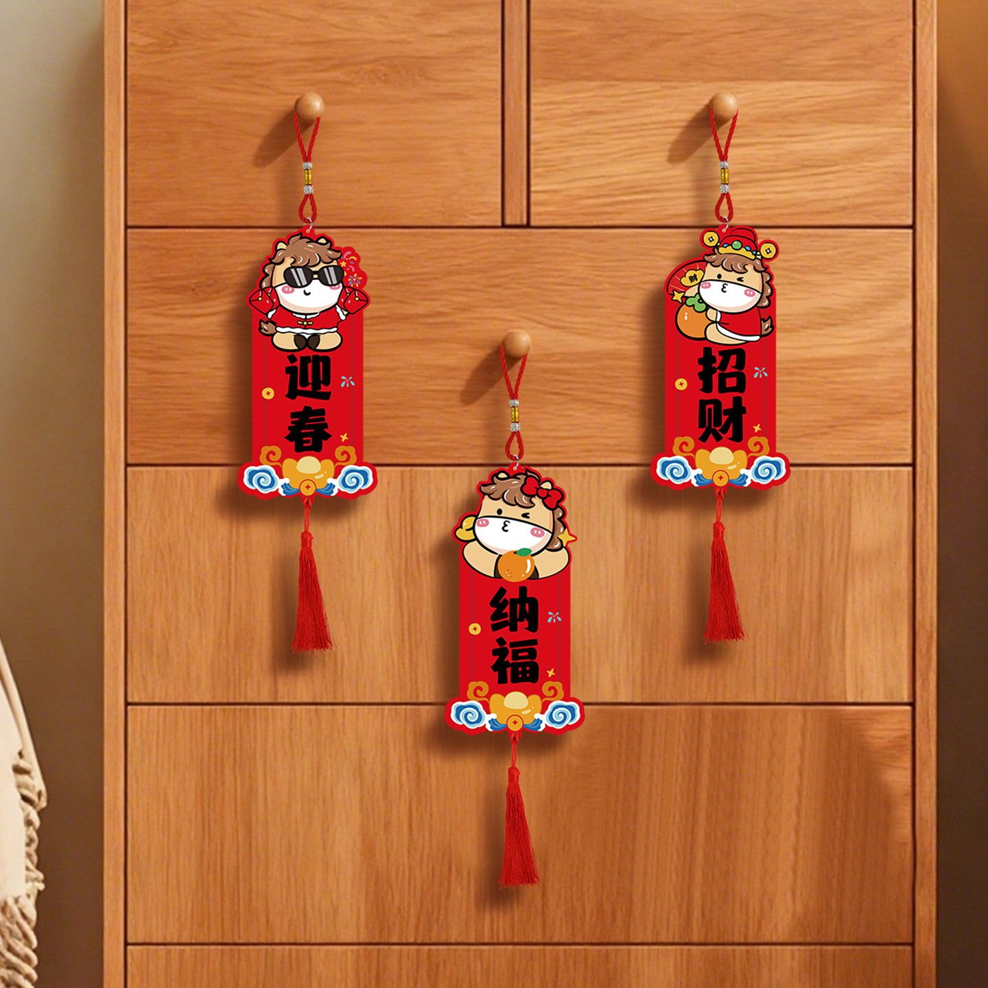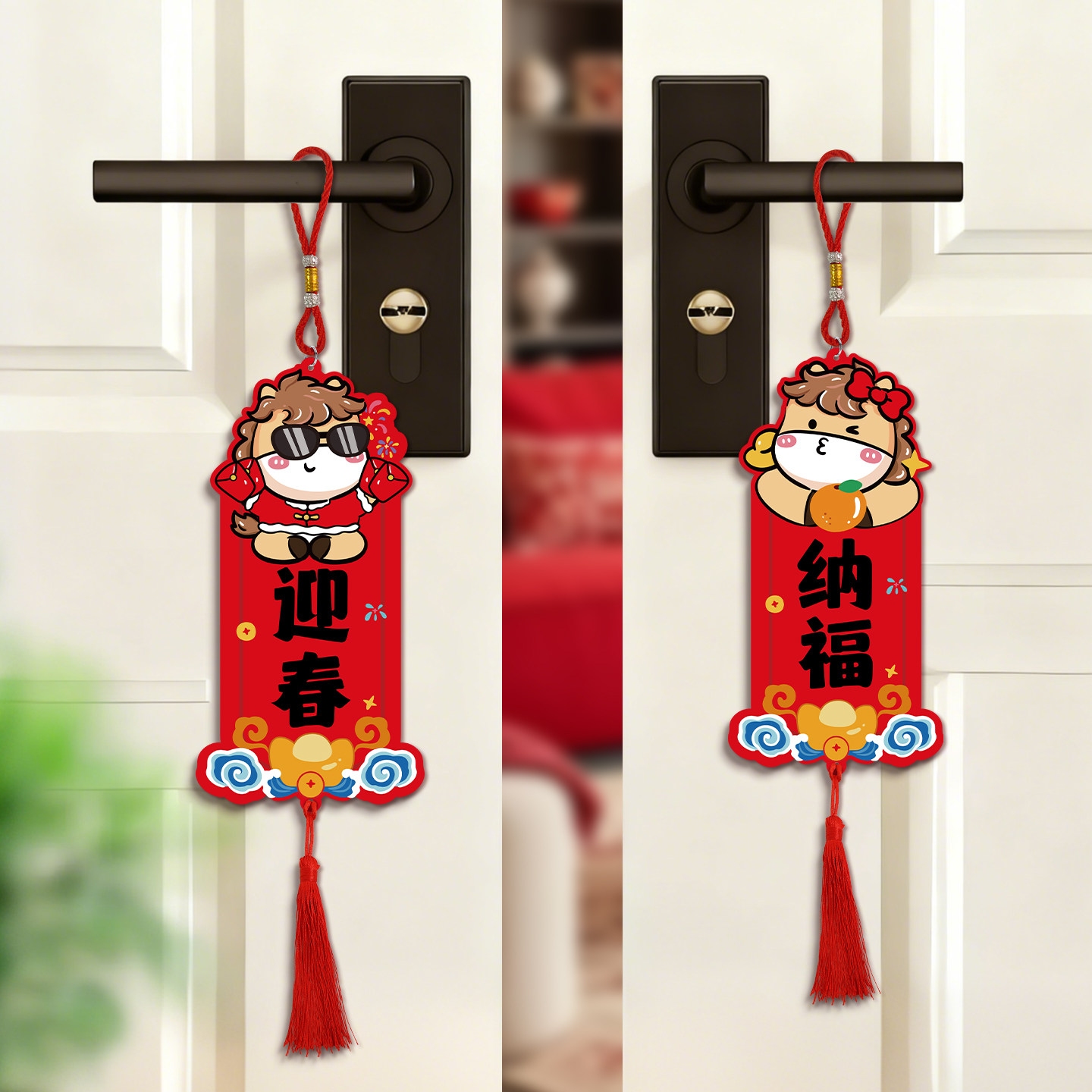 📚 新年装饰门把手挂件2026马年新款春节过年客厅卧室布置房门挂饰