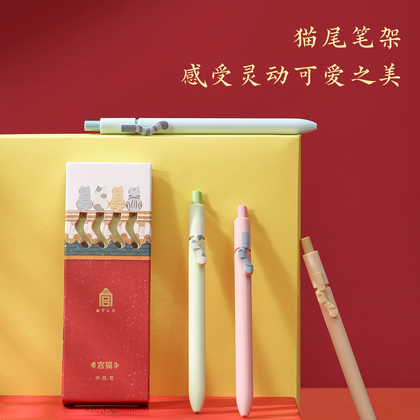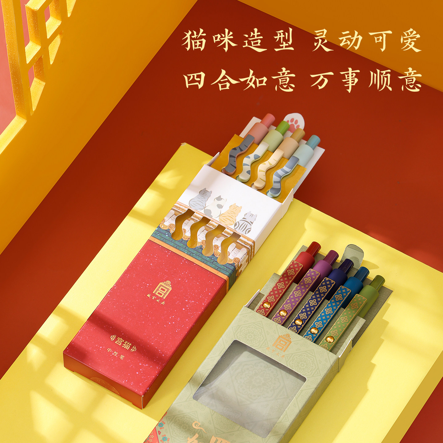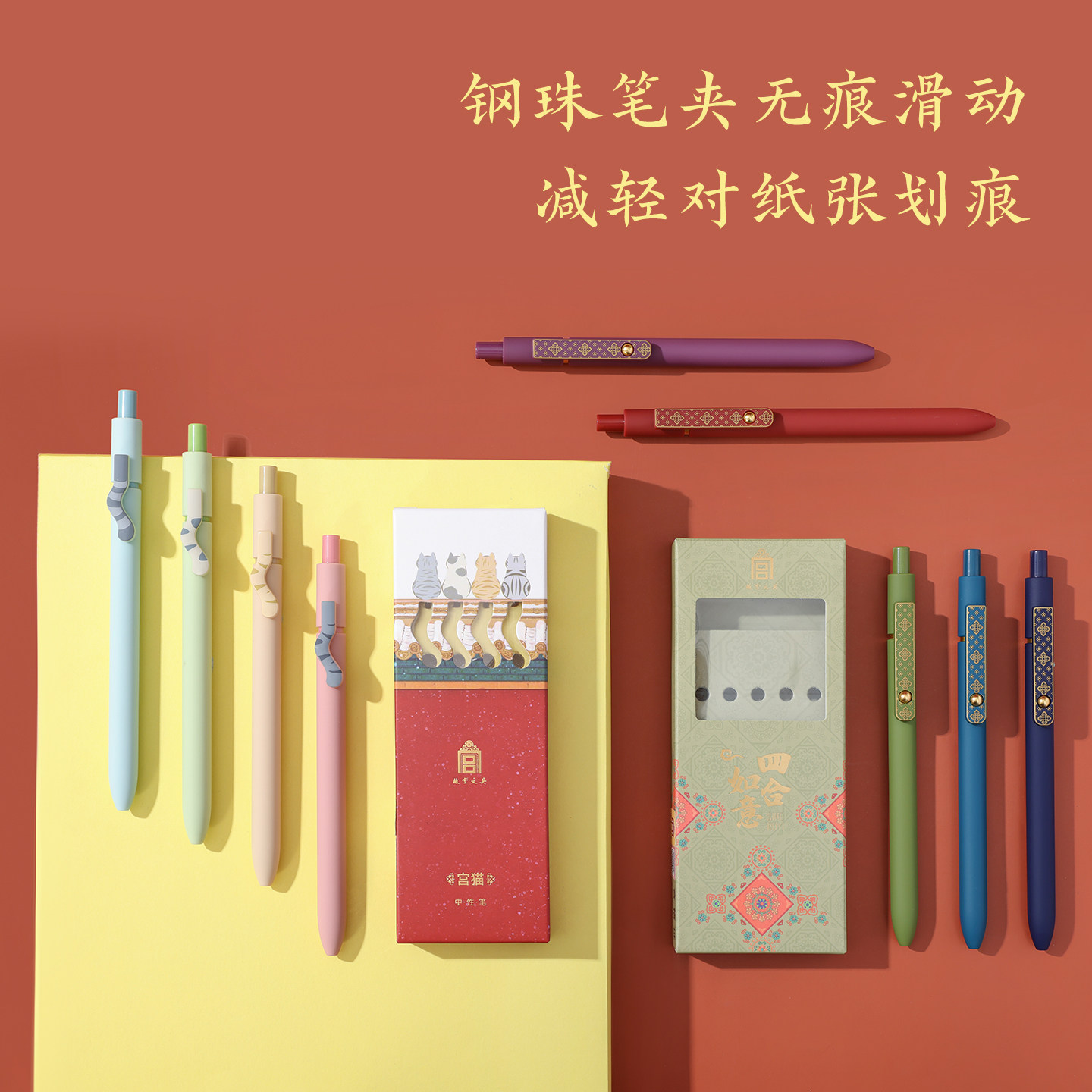 📚 故宫文创宫猫笔中性笔套装创意水笔文具小学生专用考试笔黑色文化签字笔套装高颜值初中生顺滑按动笔同学礼物