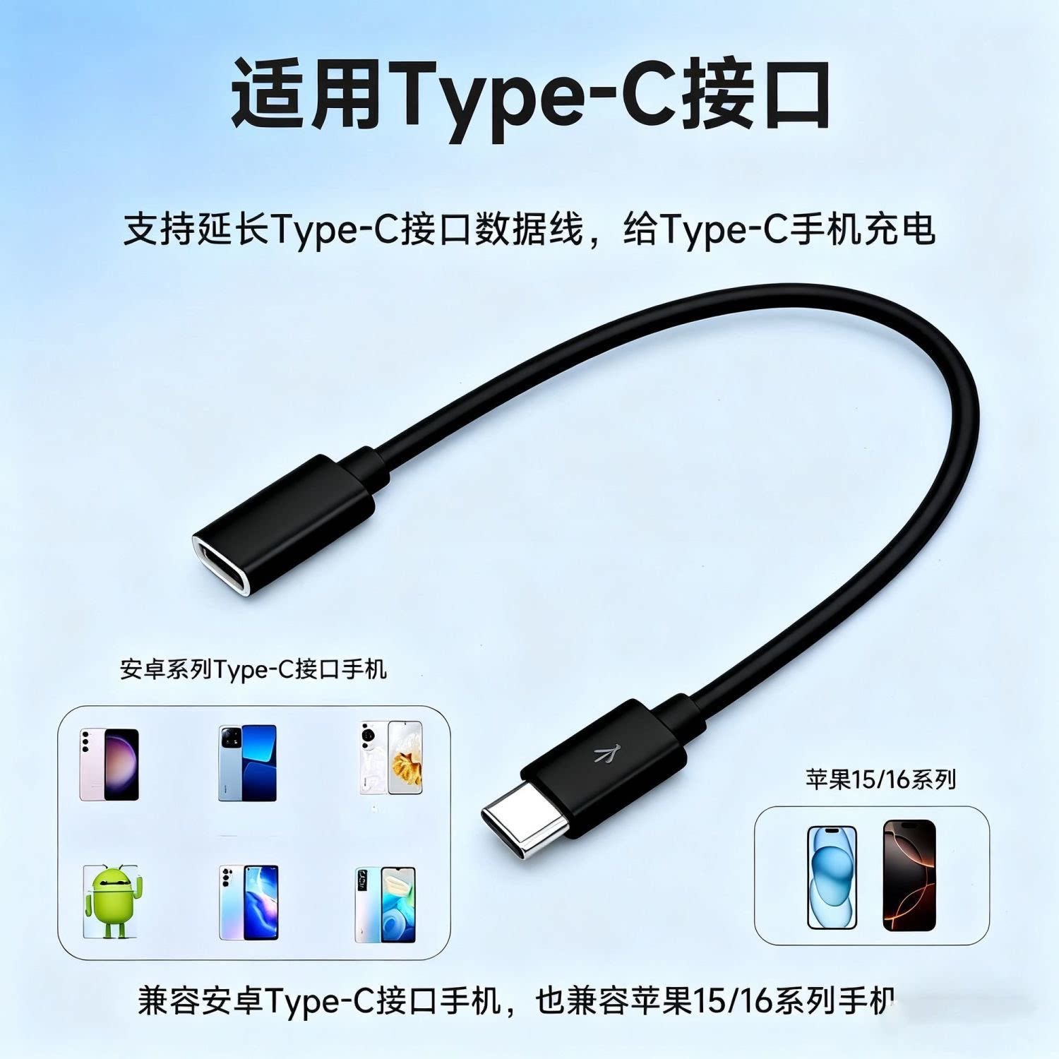 📚 typec延长线公对母口数据线加长pd充电线2A公转母tpc公头母头usb