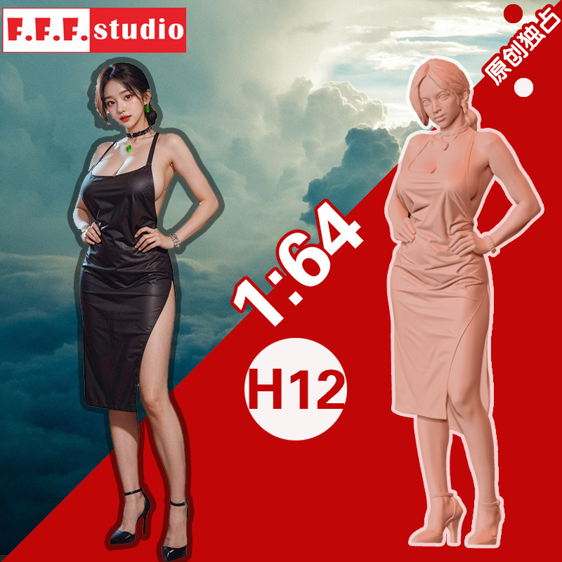 📚 H12微缩模型1:43 1/64比例小人偶豪迈老板娘真空围裙美女树脂白模