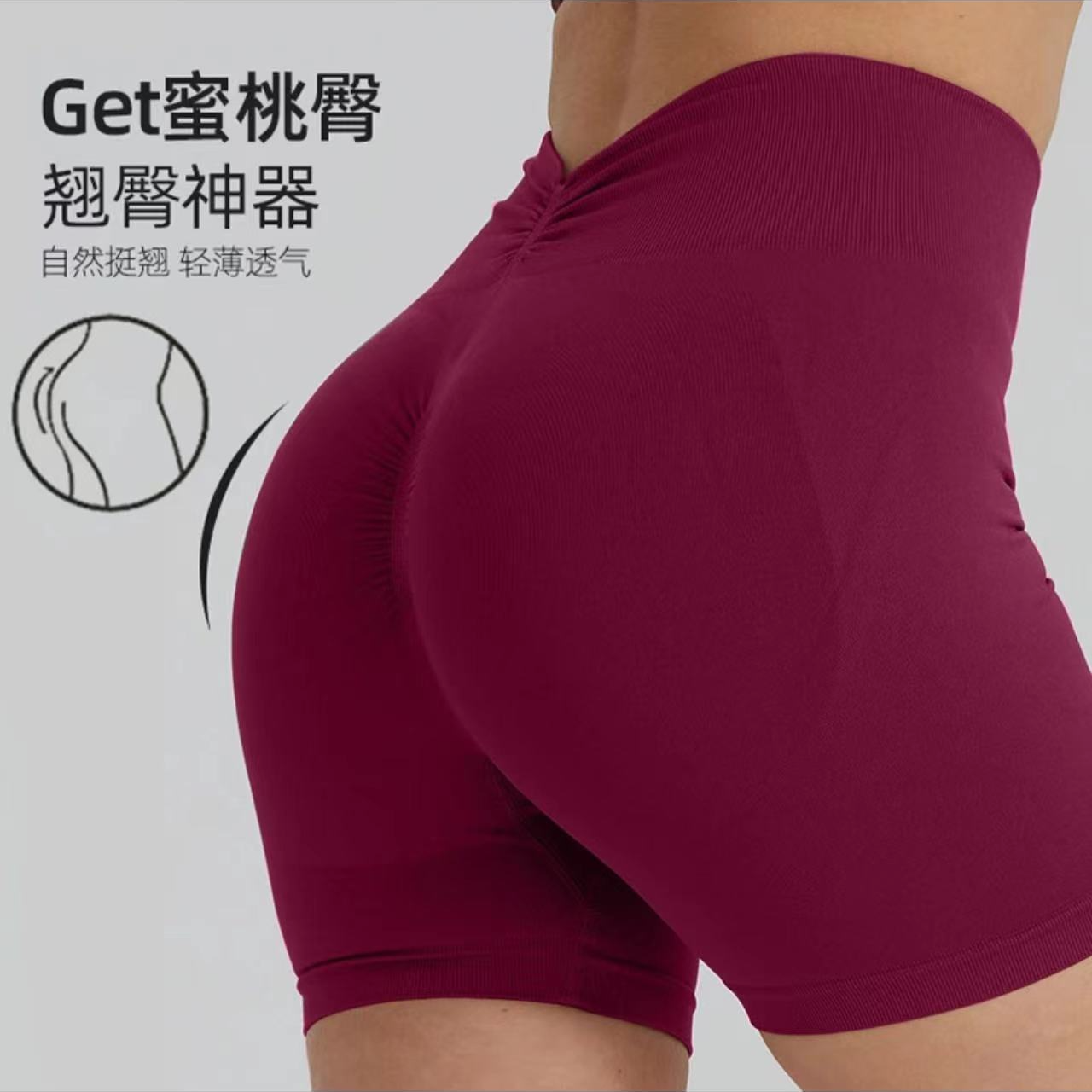 📚 新款欧美夏季后V腰健身裤短裤女紧身裤蜜桃三分瑜伽短裤高腰翘臀