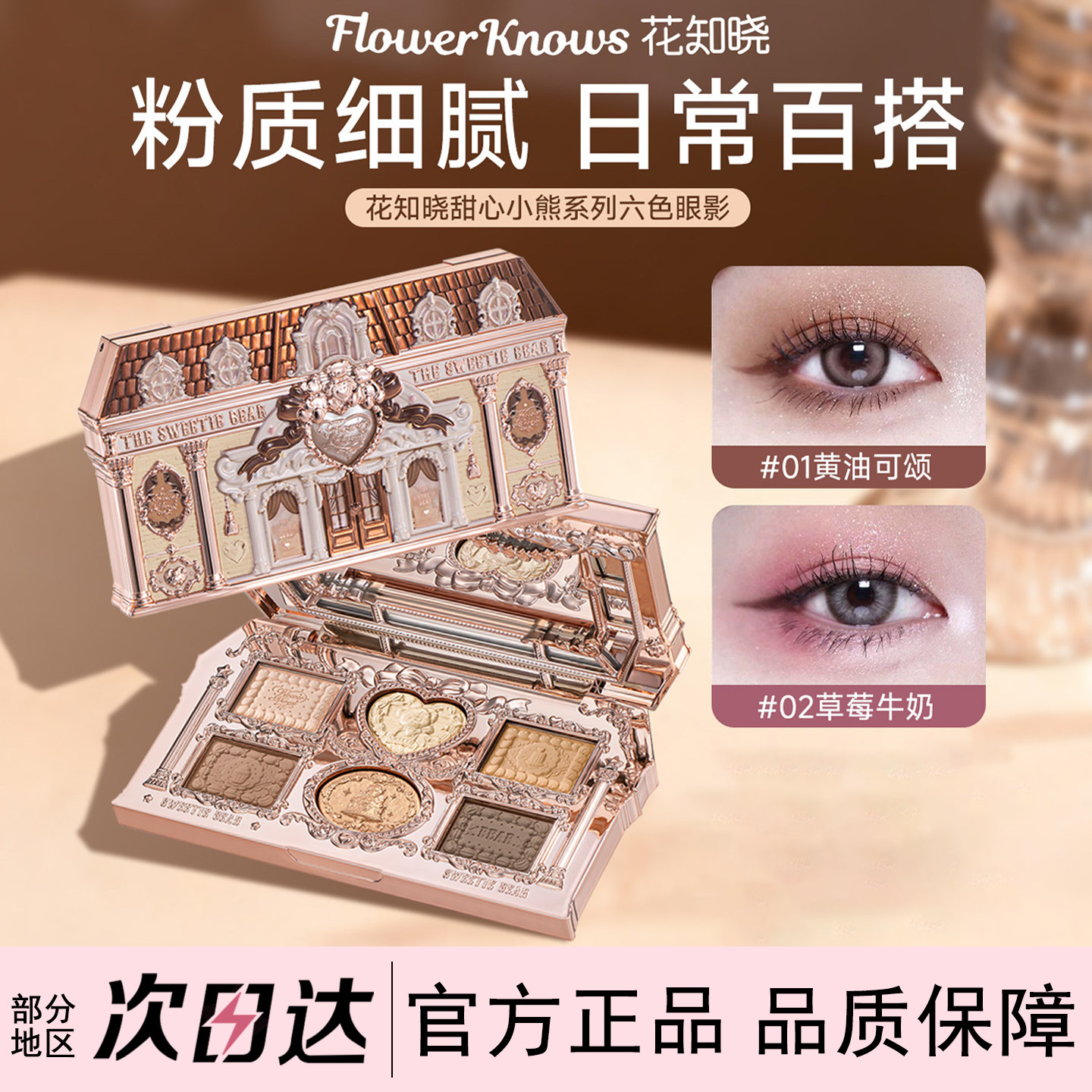 📚 花知晓甜心小熊系列六色眼影哑光珠光卧蚕盘大地色黄油可颂微哑光