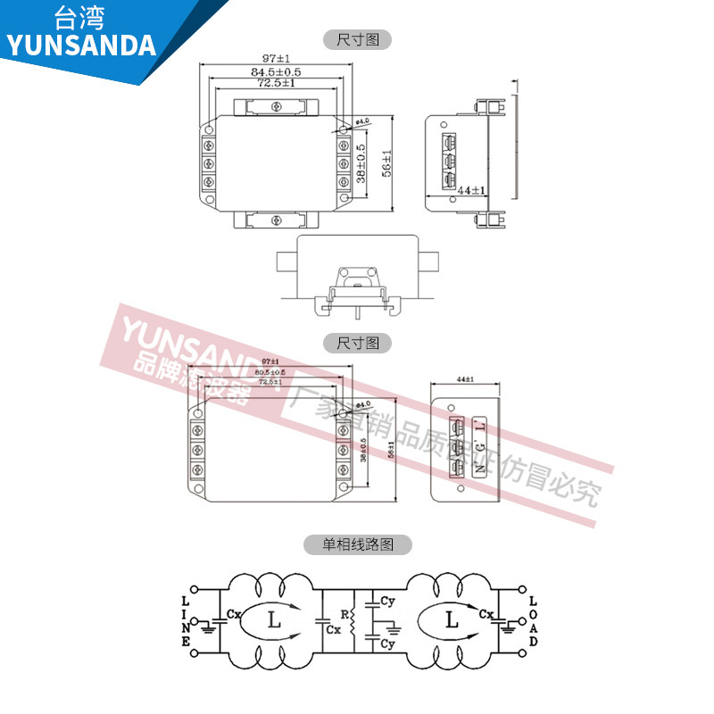 📚 YUNSANDA电源滤波器交直流单相CW4L2-3A-30A-S(005) 端子排和导轨