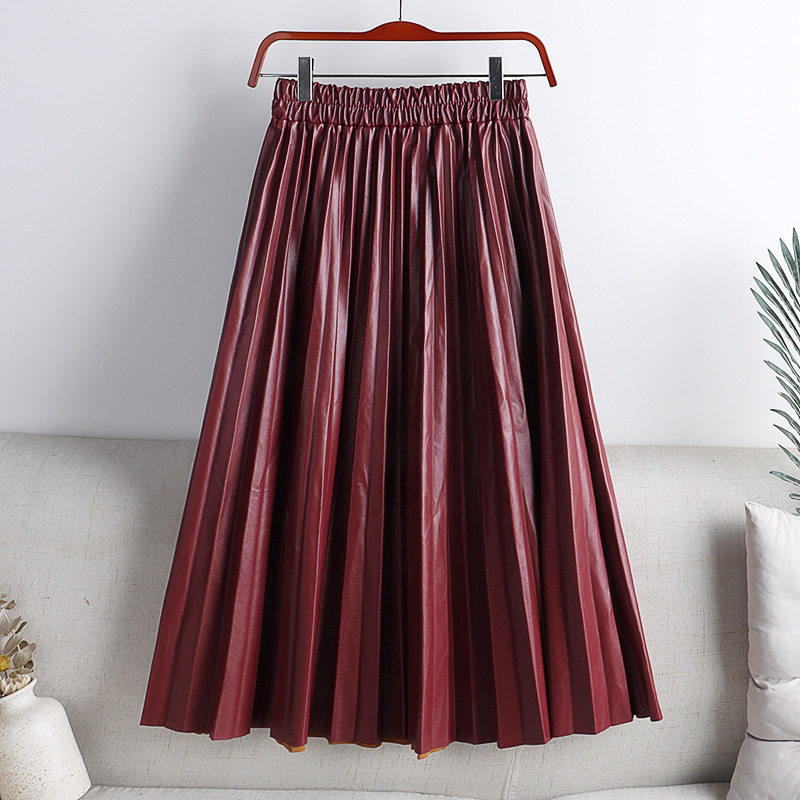 📚 High-waisted PU leather pleated skirt 女士高腰PU皮长款百褶裙