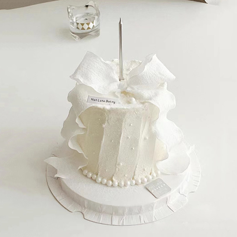 📚 2025母亲节快乐蛋糕装饰白色褶皱荷叶蝴蝶结丝带女神妈妈甜品装扮