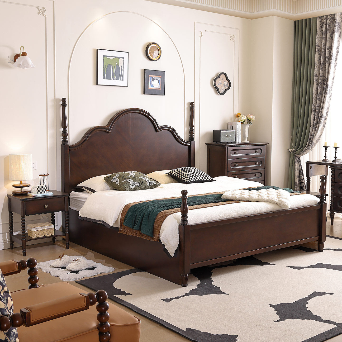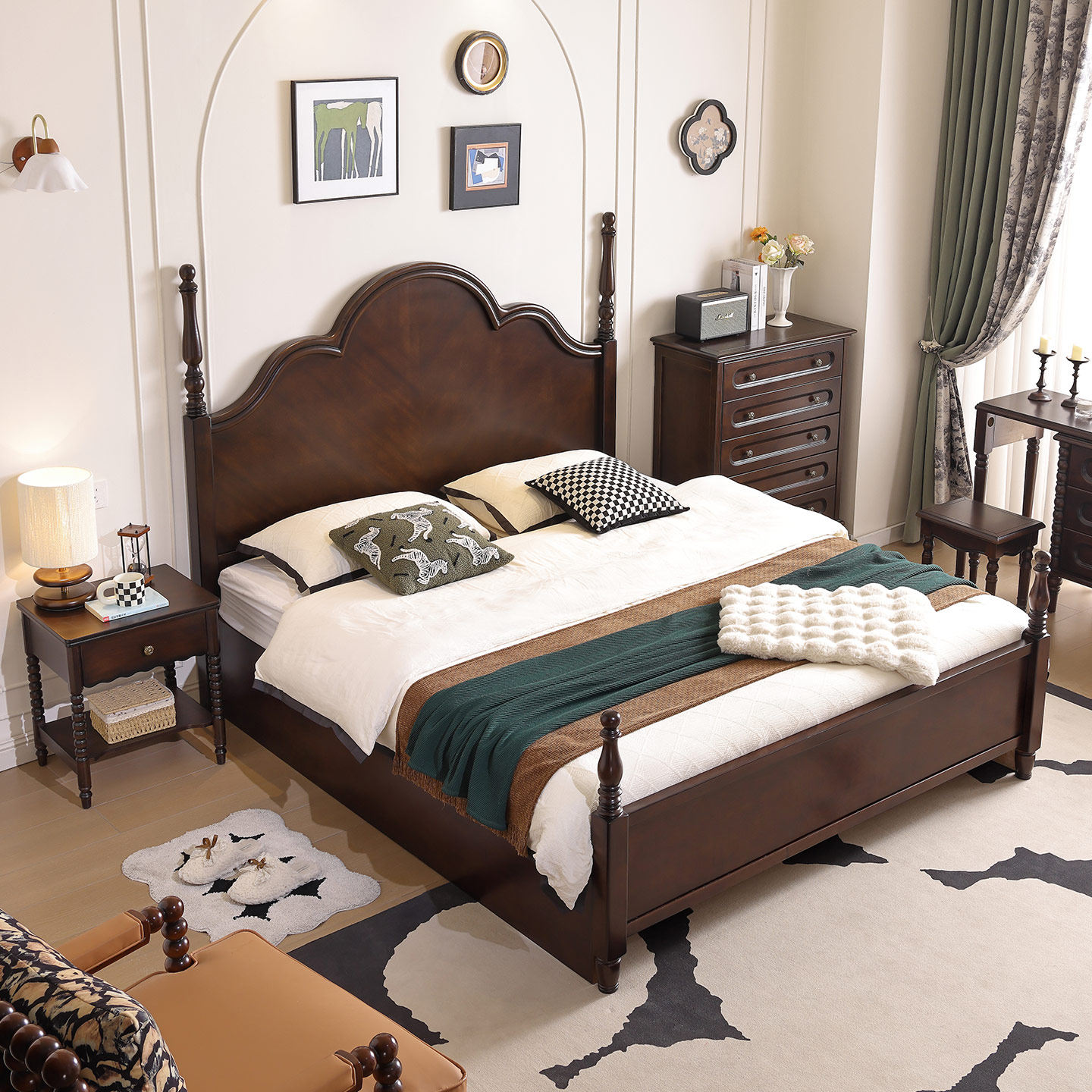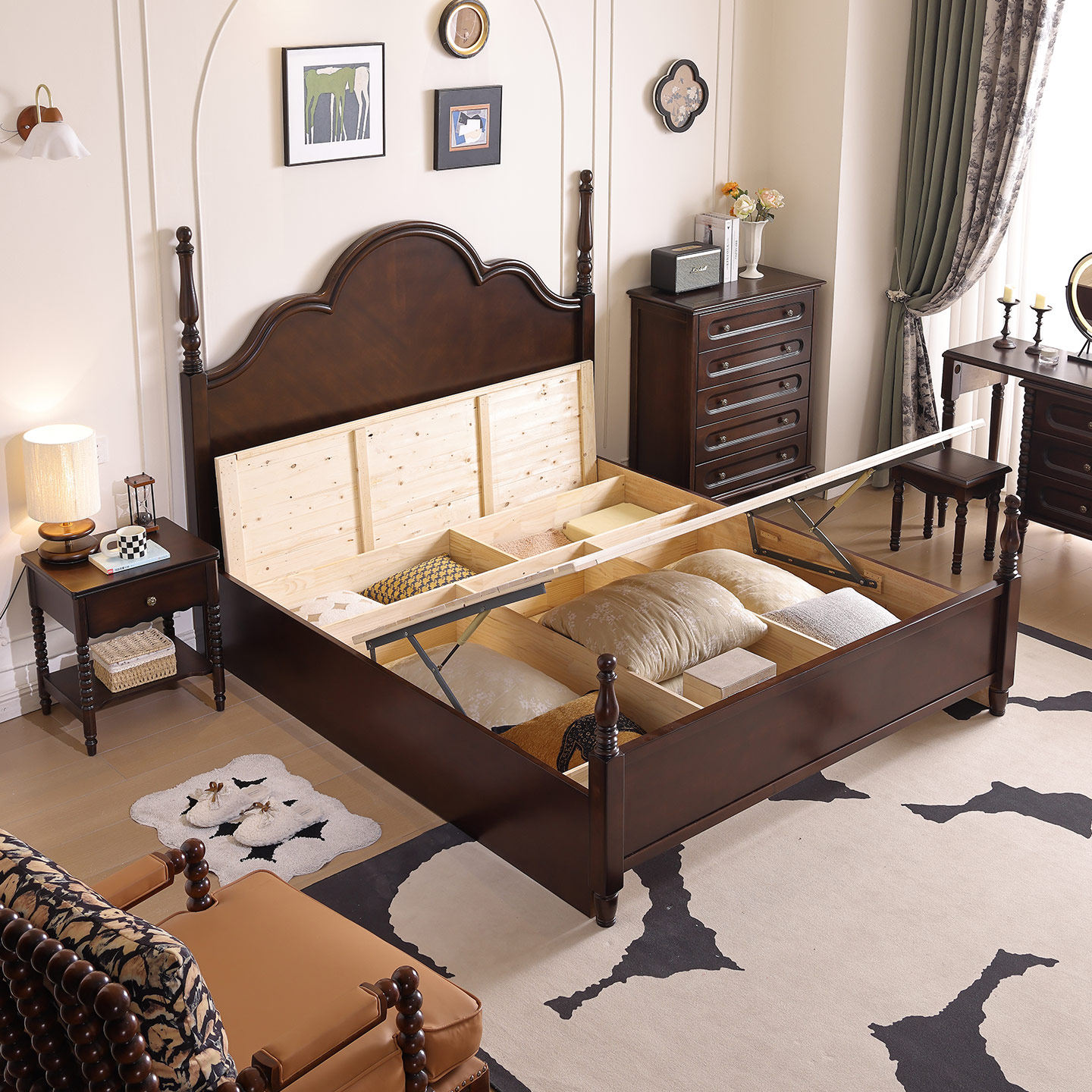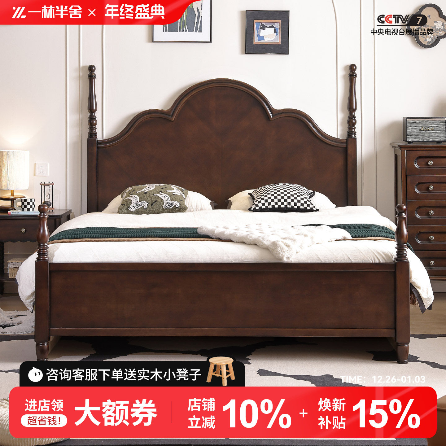 📚 一林半舍全实木床美式复古储物床家用中古风双人床卧室离地箱体床