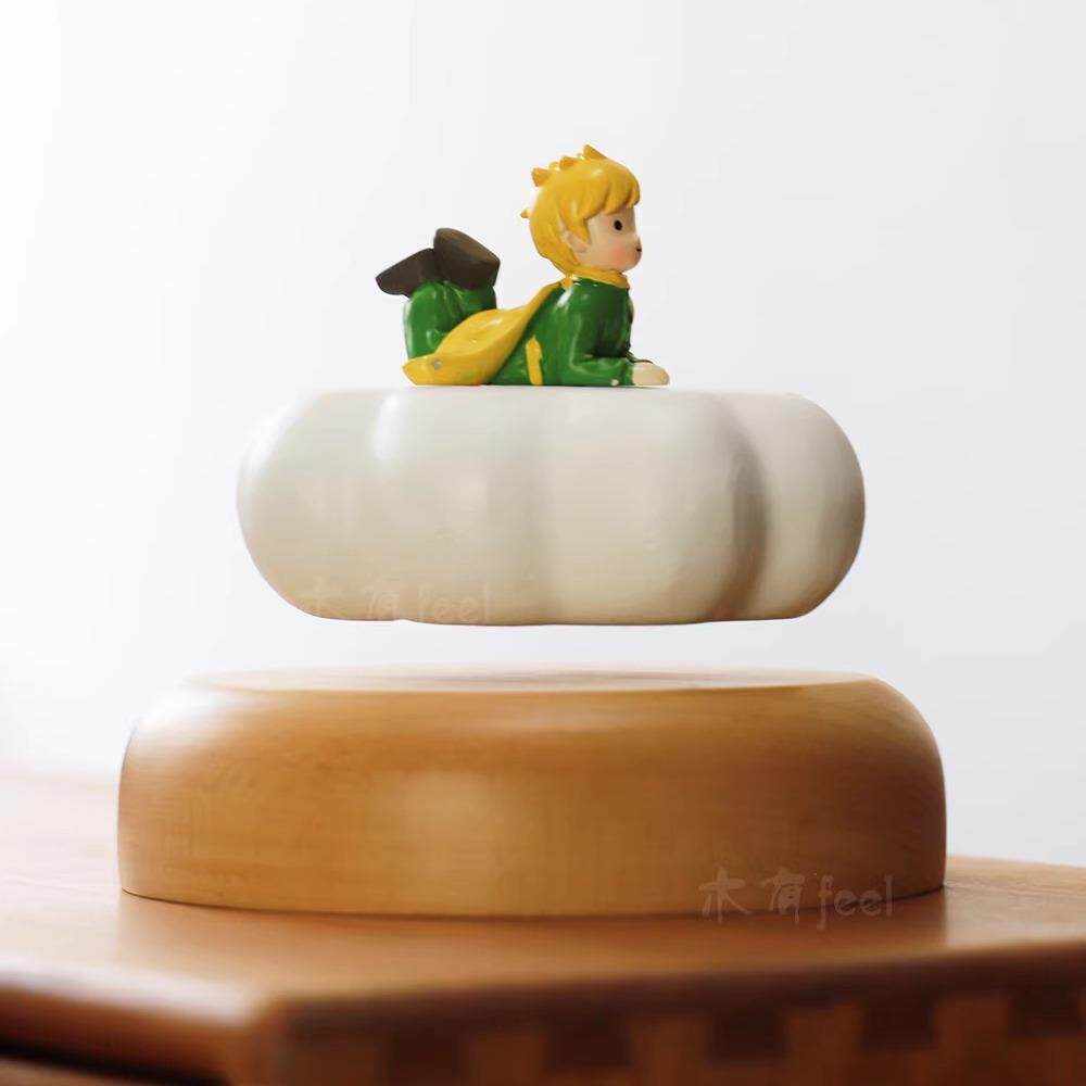 📚 磁浮白云朵小北极熊会飞的实木雕刻潮玩摆件高级旋转展示台礼物