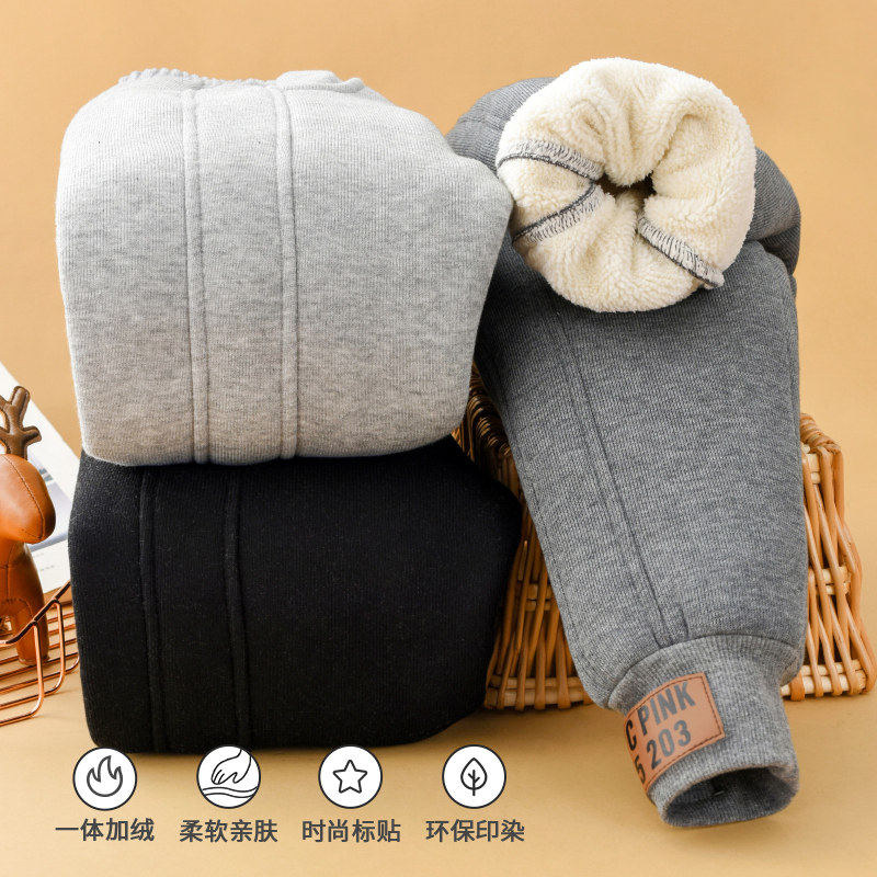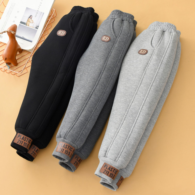 📚 儿童加绒加厚裤子冬季外穿男童卫裤女童棉裤特厚羊羔绒一体运动裤