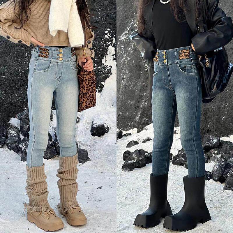 📚 女童秋冬修身铅笔裤2025新款冬季中大童洋气百搭牛仔裤儿童小脚裤