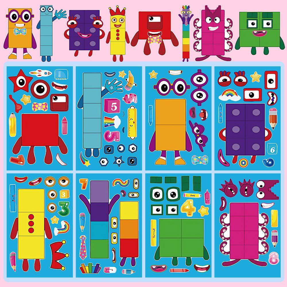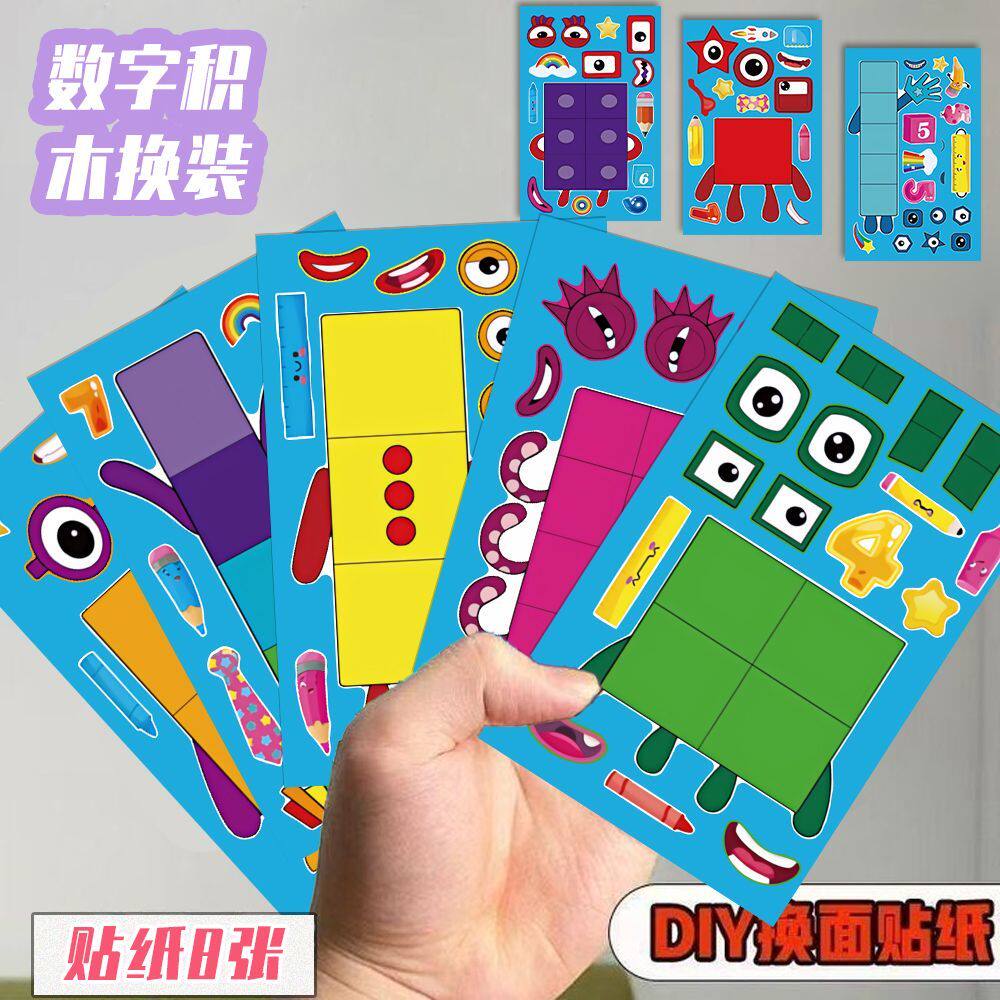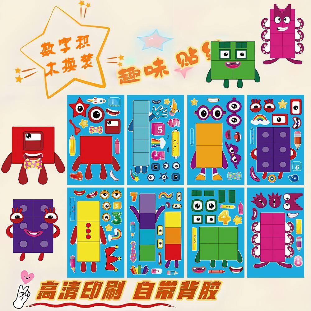 📚 趣味儿童数字积木换装贴纸卡通儿童趣味益智手工DIY拼贴贴画装饰