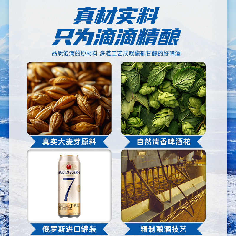 📚 波罗的海俄罗斯原装进口原浆精酿啤酒整箱批发7号啤酒450ml*24罐