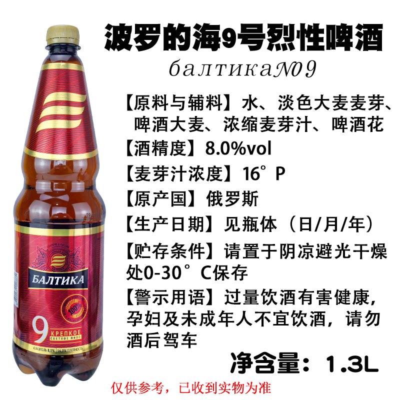 📚 1300ml*1桶俄罗斯原装进口波罗的海9号烈性高浓度大麦芽啤酒精酿