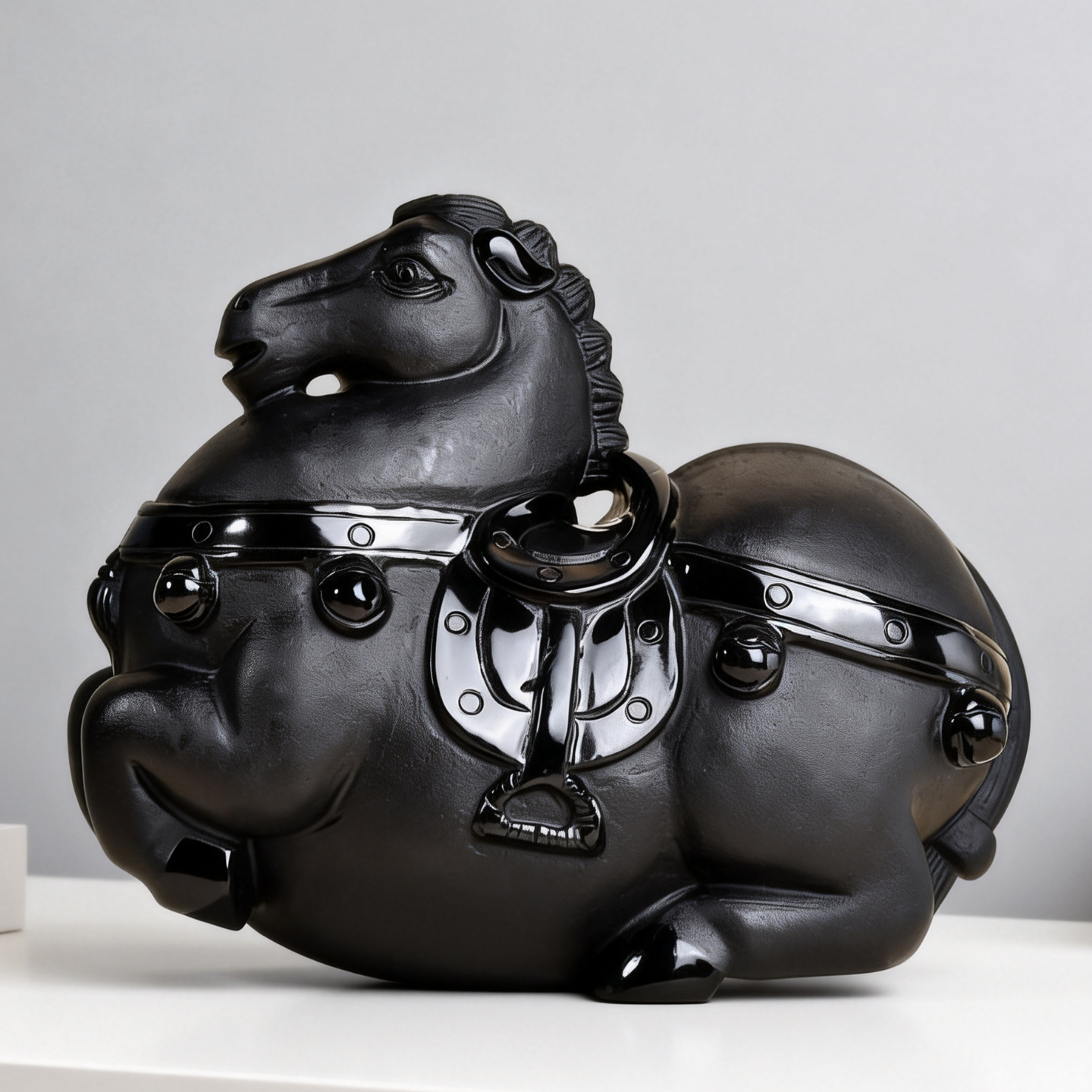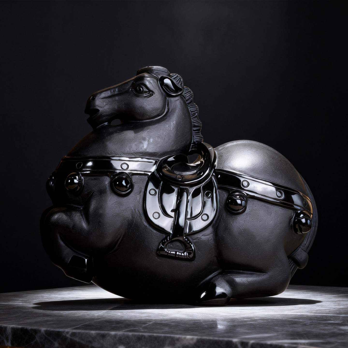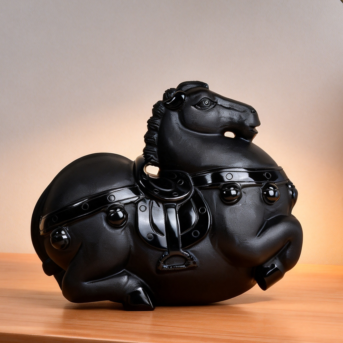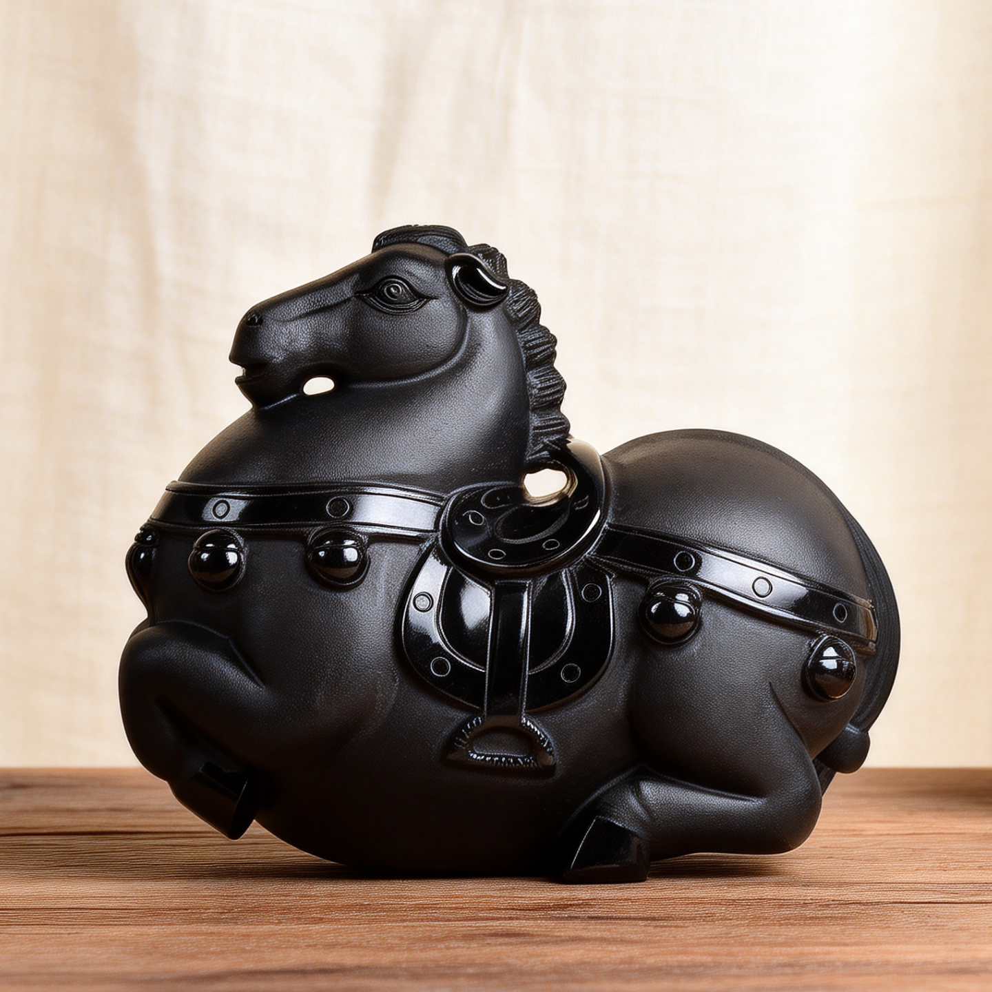 📚 天然黑曜石生肖马摆件属相本命年属马羊吉祥物唐马家居卧室办公室