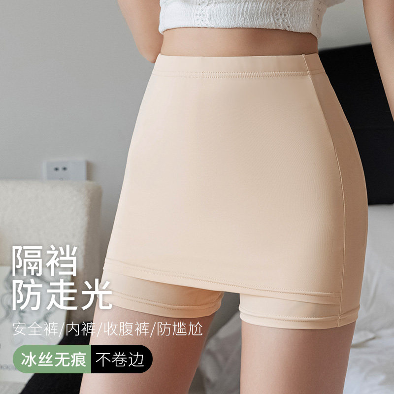 📚 无痕冰丝安全裤女二合一防走光隔层遮三角区平角打底裤可外穿裙裤