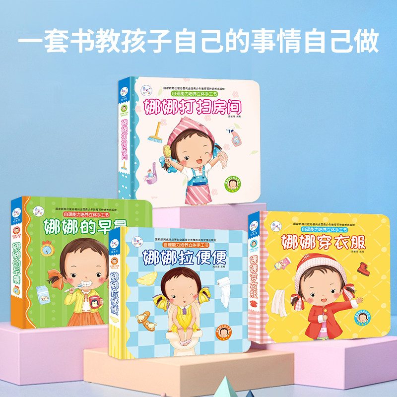 📚 当当网 海润阳光-儿童自理能力培养立体手工书(全4册)《娜娜的早晨》《娜娜拉便便》《娜娜穿衣服》《娜娜打扫房间》幼儿早教