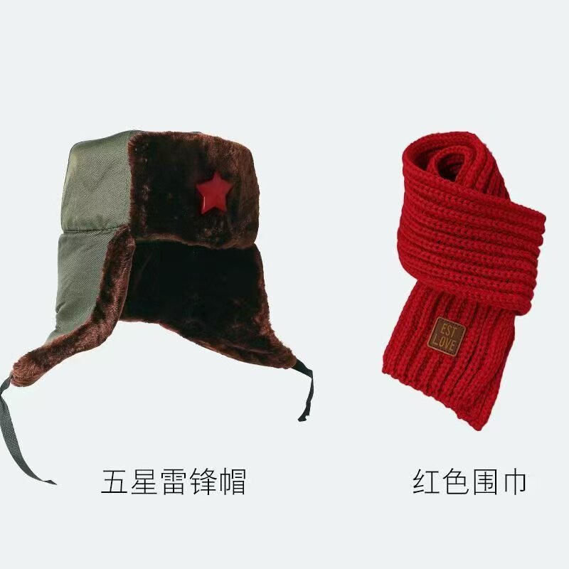 📚 儿童雷锋帽冬季男童小孩保暖帽东北军大衣绿色护耳帽大童女孩亲子