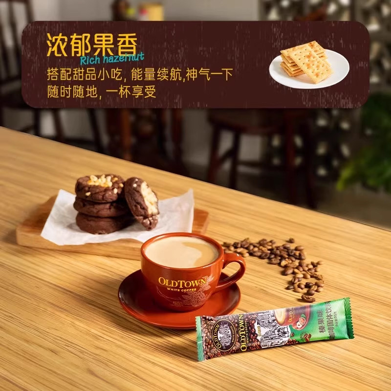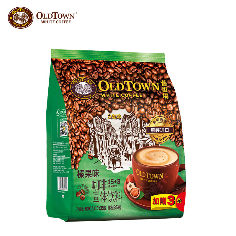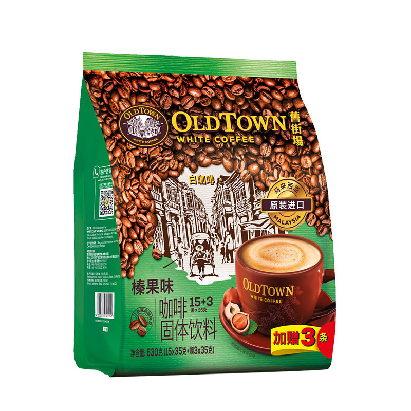 📚 马来西亚进口旧街场OLDTOWN白咖啡榛果味三合一速溶咖啡630g袋装