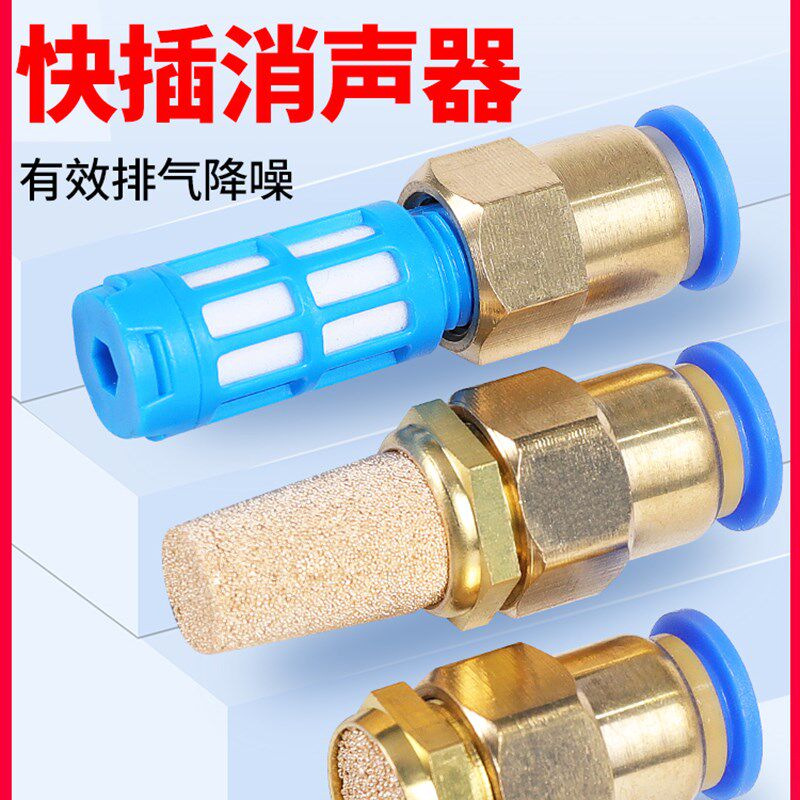 📚 气动接头插入式电磁阀平头消声器快插长头插管塑料降噪消音器静音