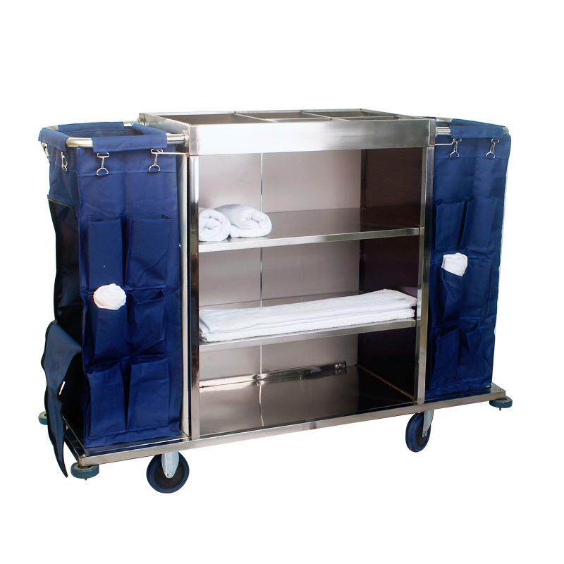 📚 酒店草车可折叠馆客宾房作服GYT务车打扫工清洁不锈钢静音轮清佰