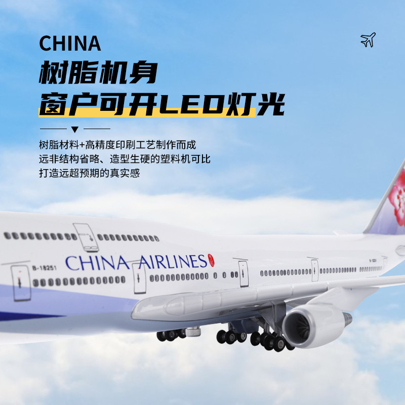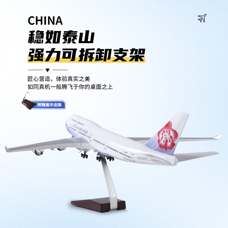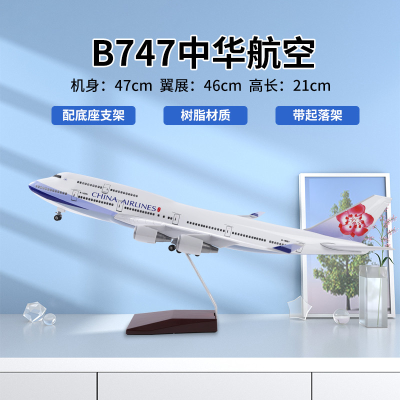📚 48cm中华航空波音747飞机模型带轮带灯仿真客机模型生日礼物