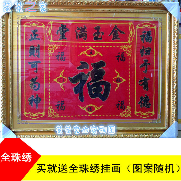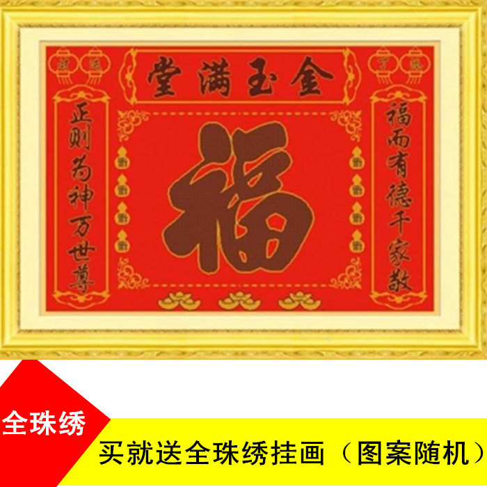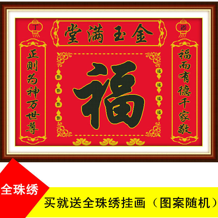 📚 新款中堂画客厅十字绣土地公联珠绣十字绣全珠绣福字对联金玉满堂