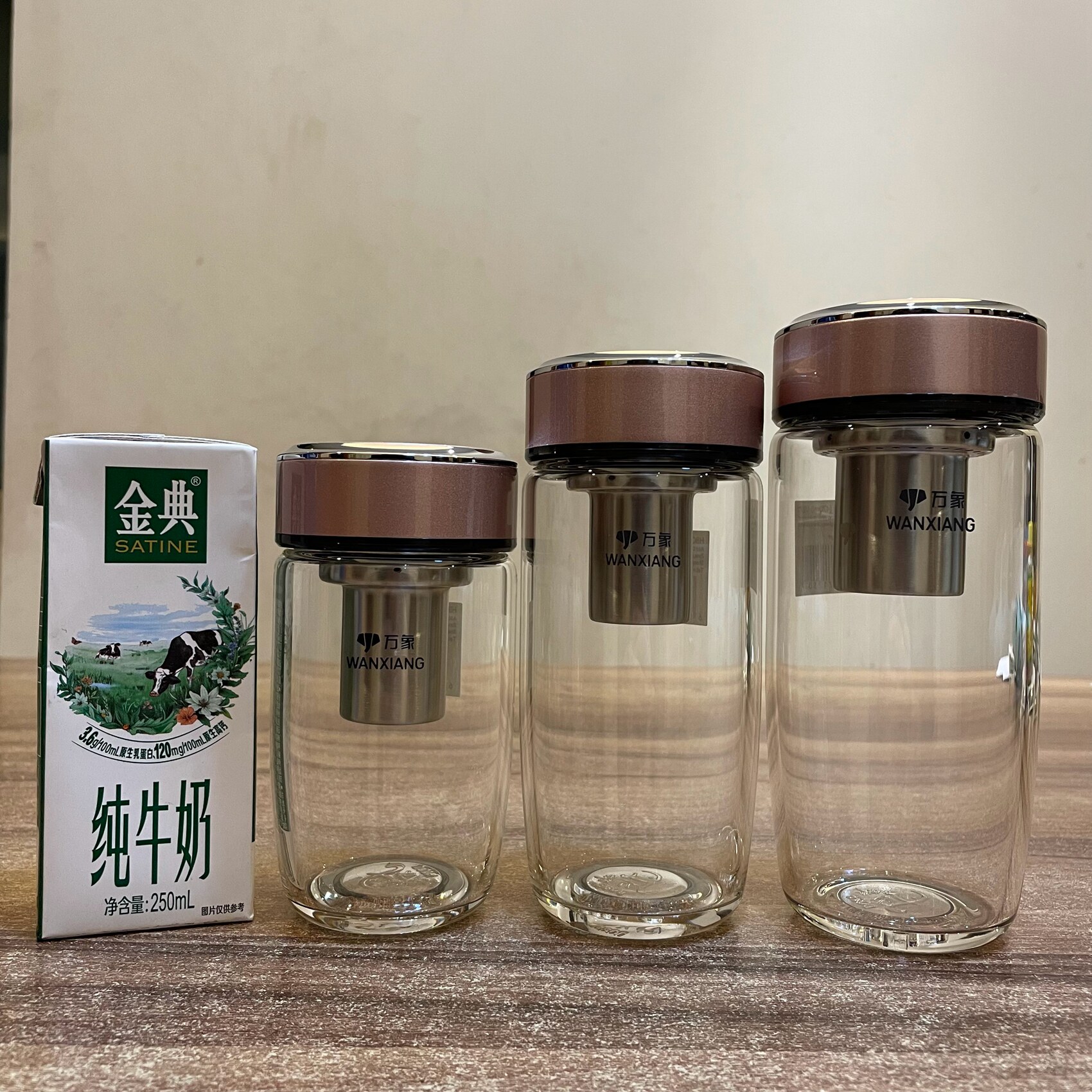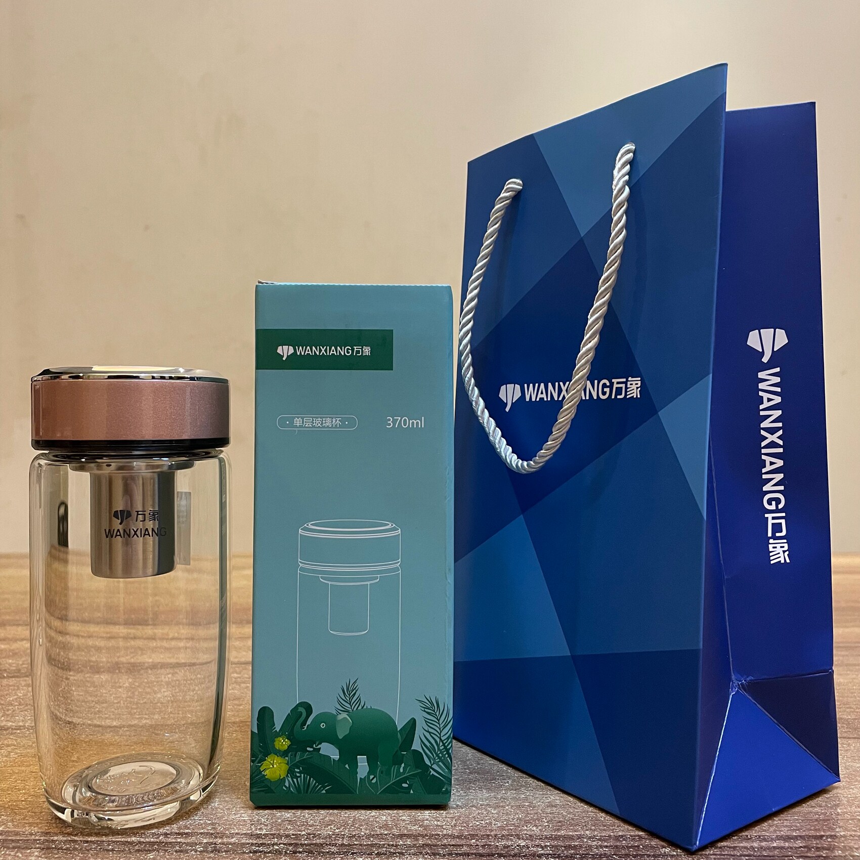 📚 万象单层鹅蛋形玻璃杯弧形杯身车载水杯设计带滤网时尚珠光杯盖