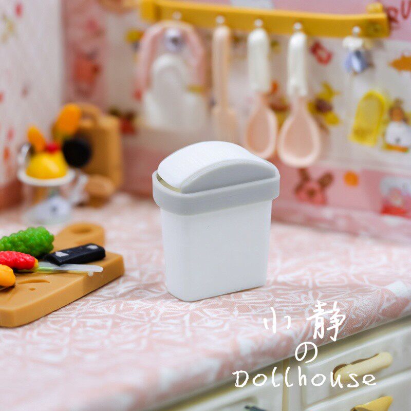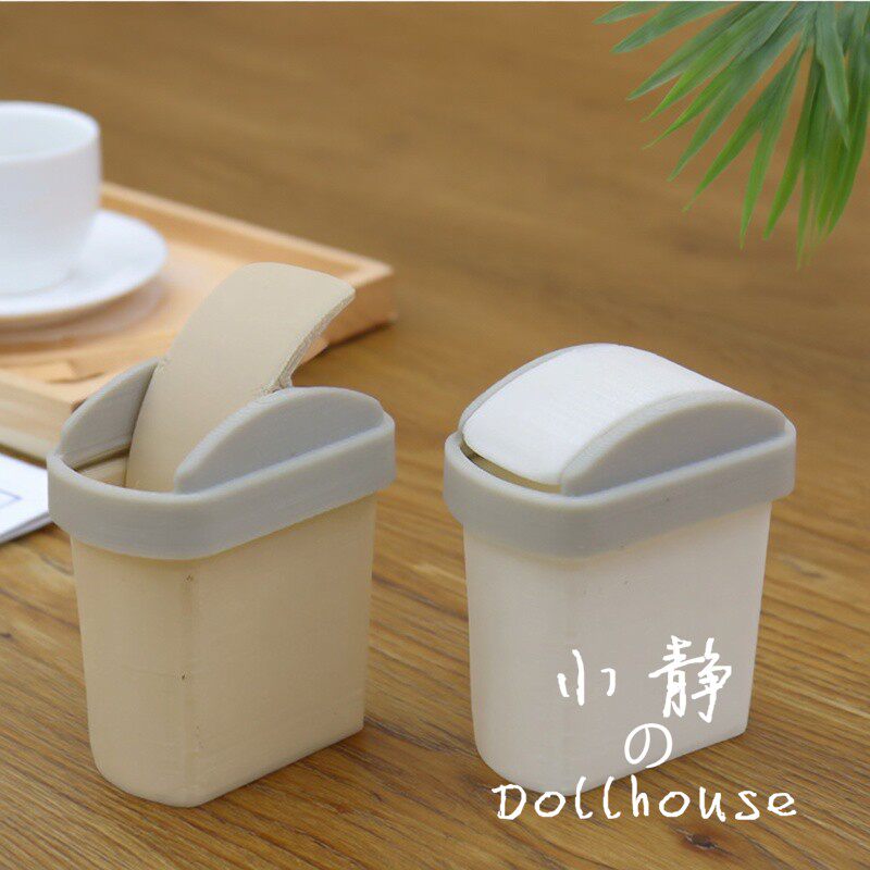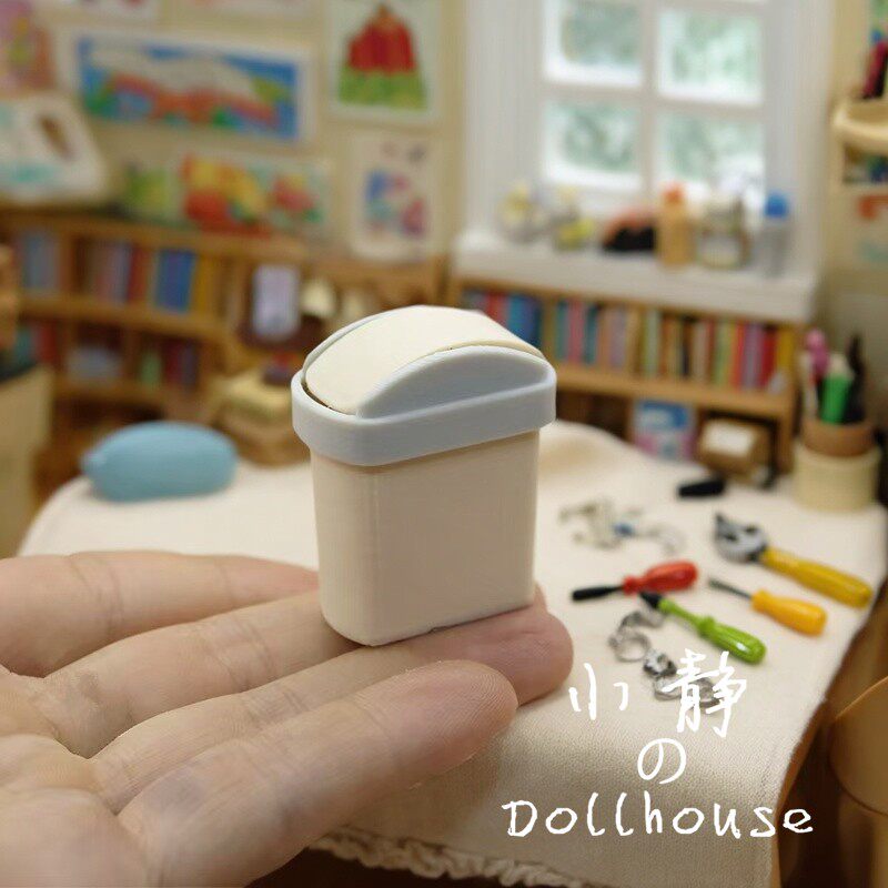 📚 1:12迷你翻盖仿真垃圾桶家居装饰摆件精致桌面收纳盒DIY创意物件