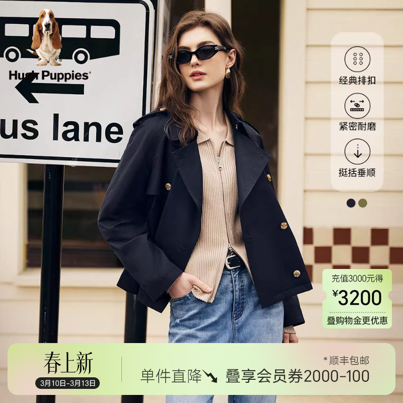 📚 【挺括垂顺】暇步士女装春季双排扣短款风衣宽松显瘦通勤外套