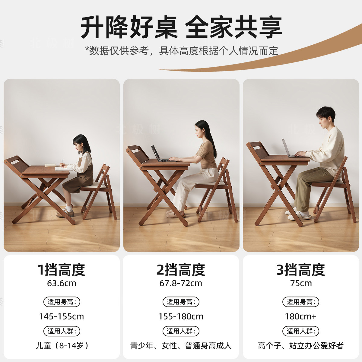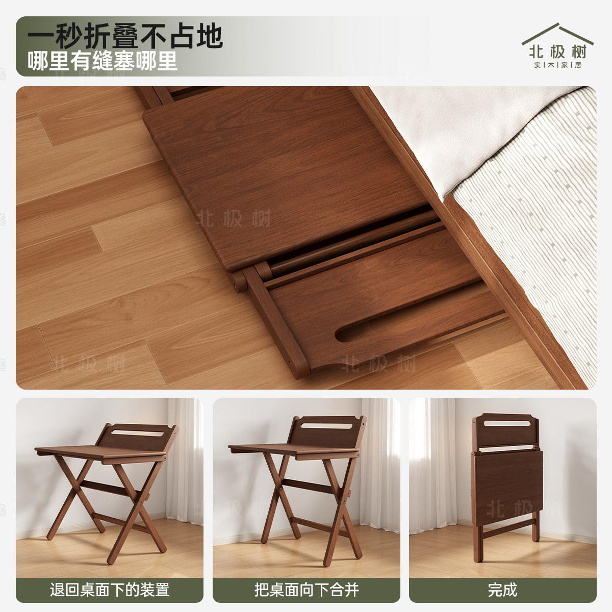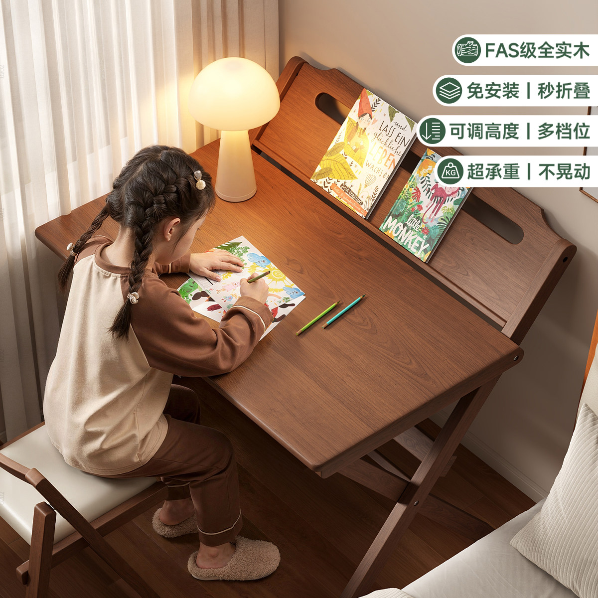 📚 实木折叠书桌儿童学习桌子家用可调节小户型床边写字桌简易办公桌