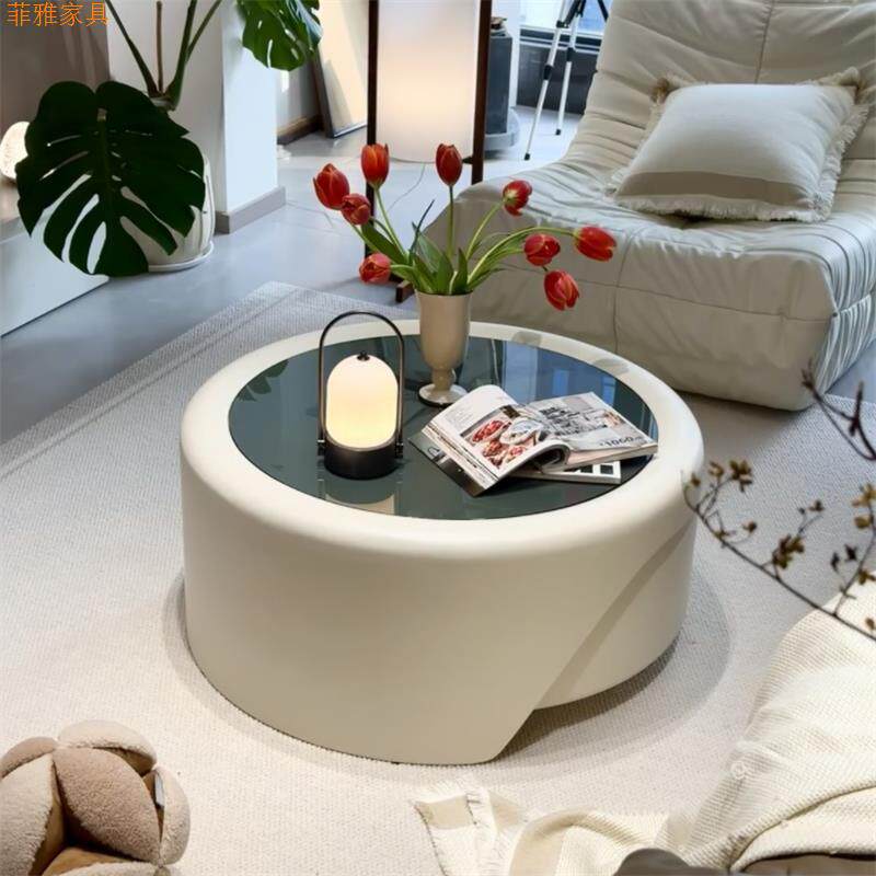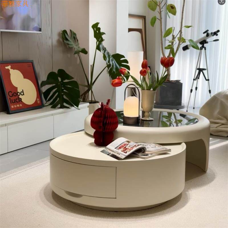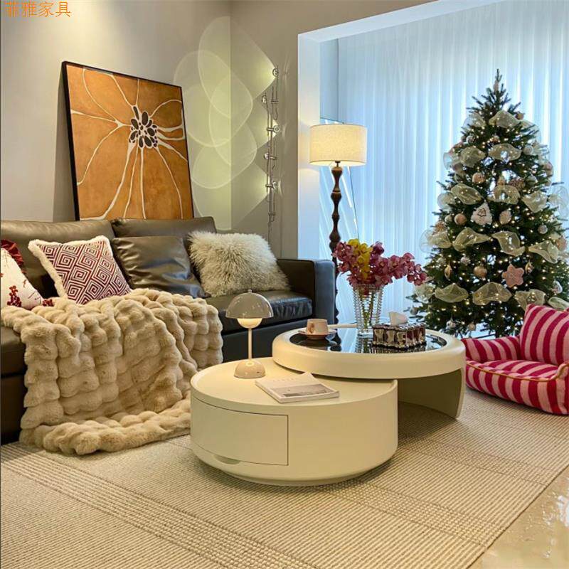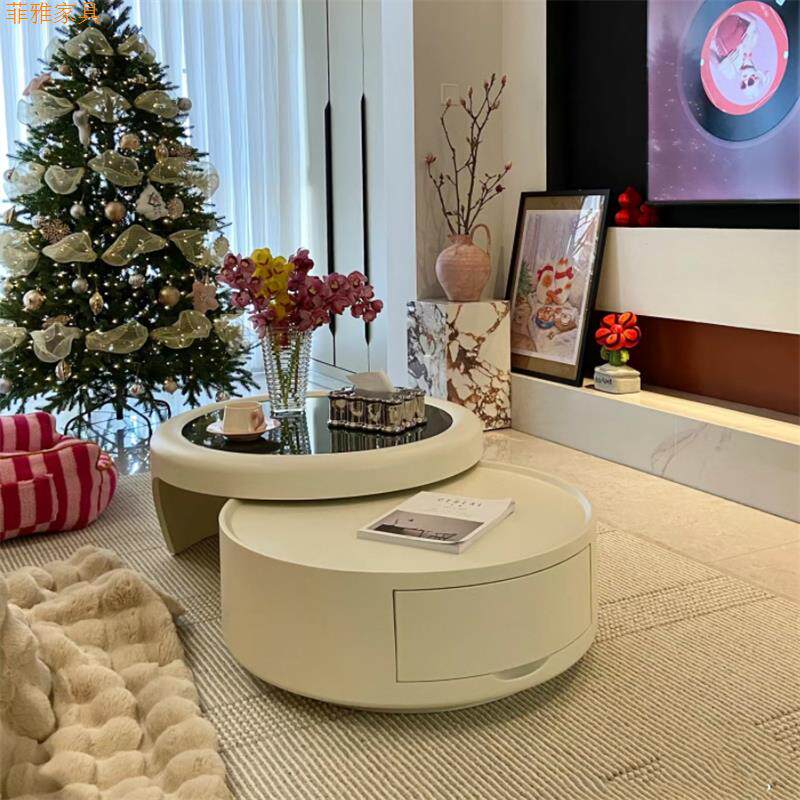 📚 奶油风茶几子母组合小户型客厅家用北欧轻奢创意现代简约圆形茶几