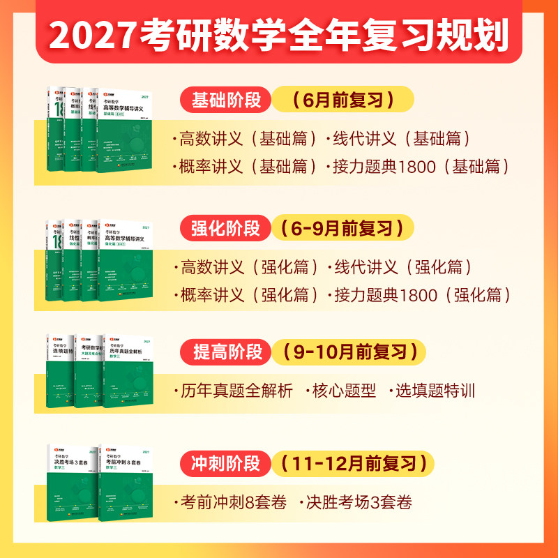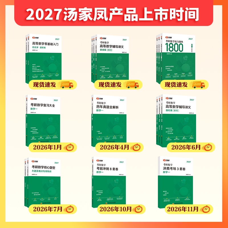 📚 汤家凤2027考研数学高等数学辅导讲义书课包接力题典1800题数学一数二数三任选汤家凤一千八线性代数概率论辅导讲义年真题