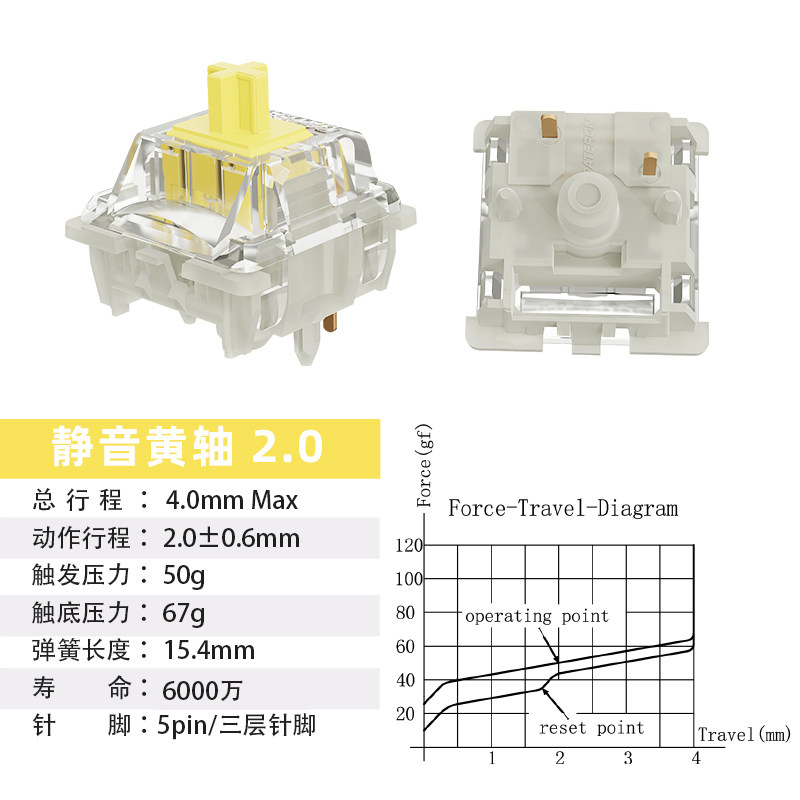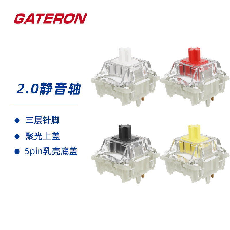 📚 GATERON佳达隆2.0静音轴聚光上盖三层针脚械键键盘开关 5pin