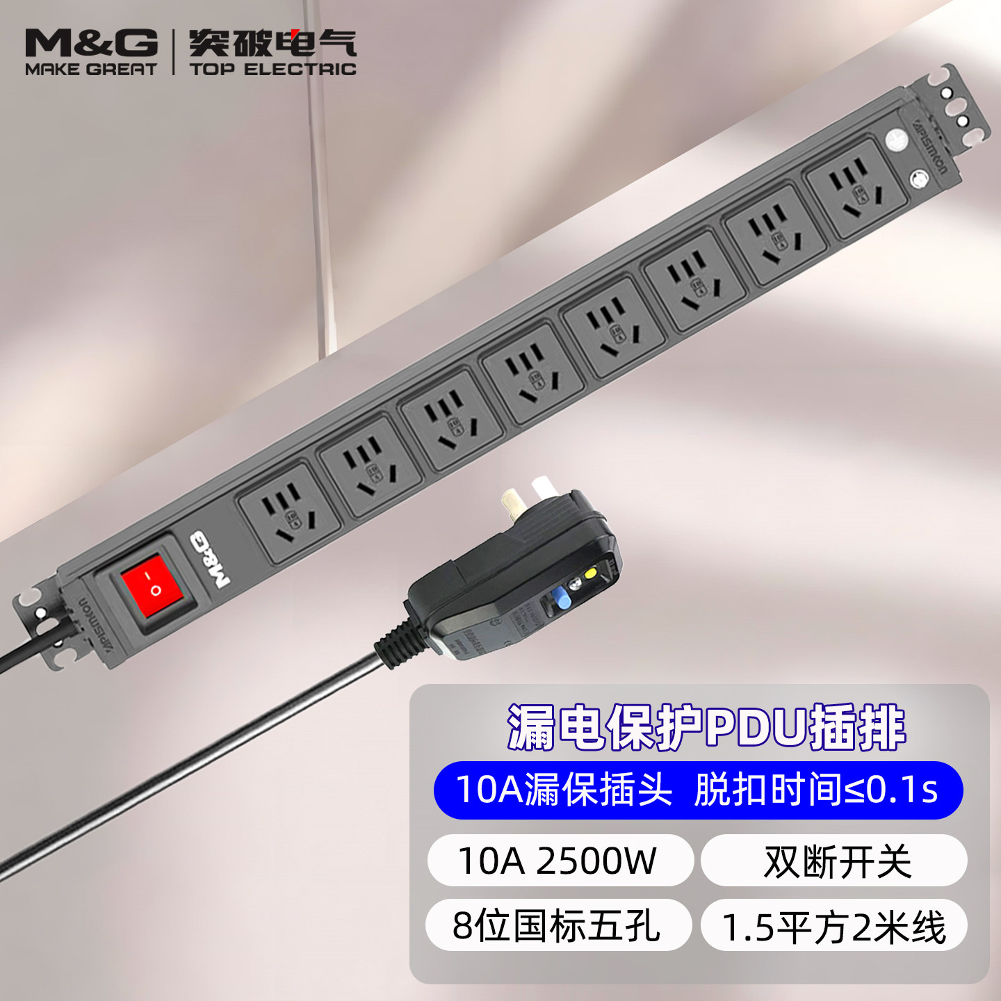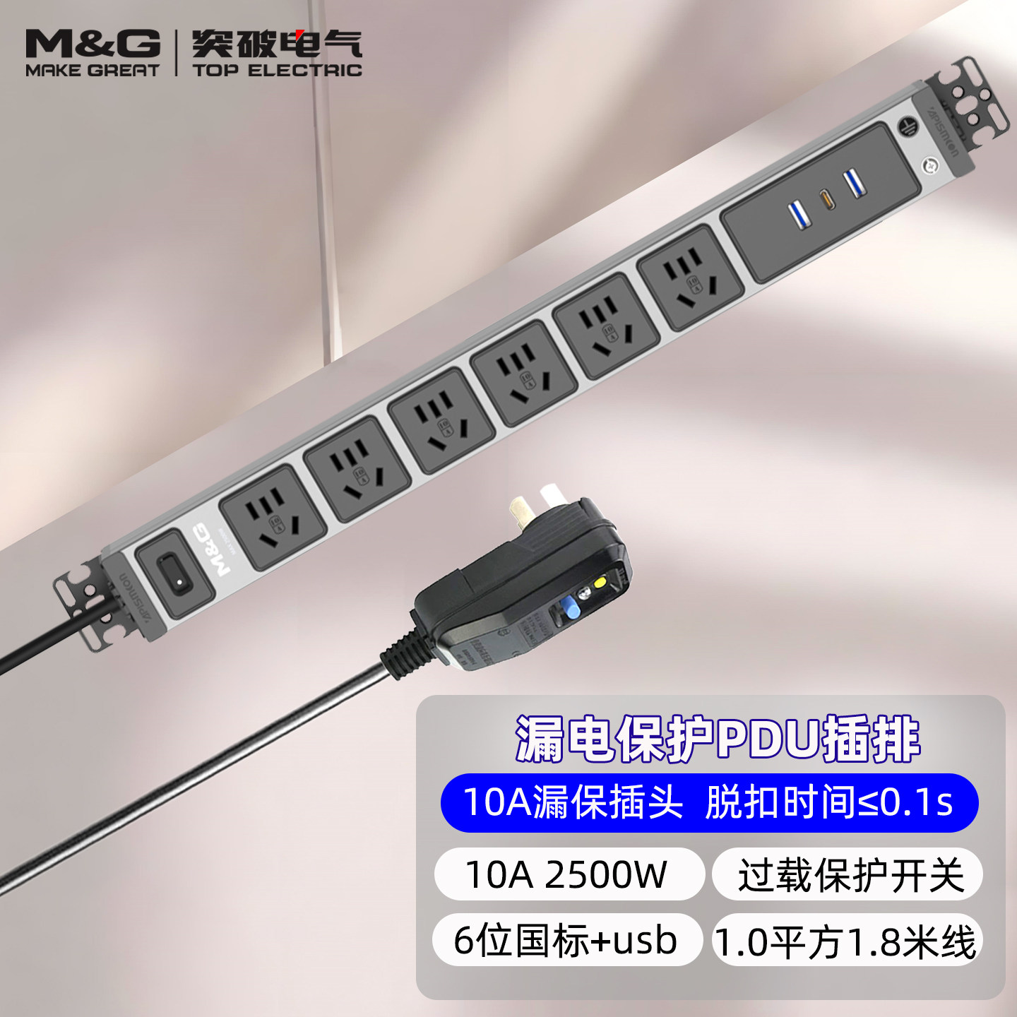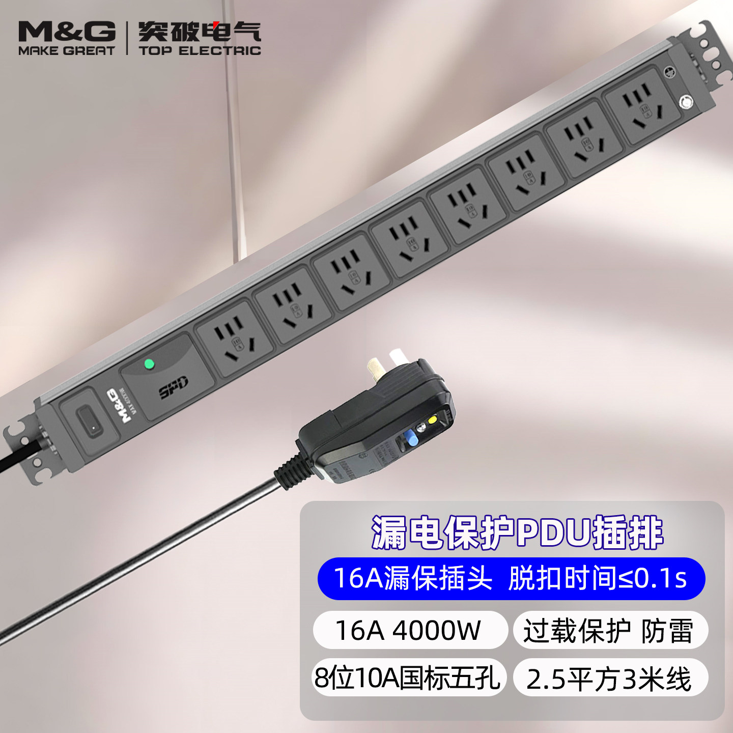 📚 M&G突破pdu机柜插座插排漏电保护8/10/12位开关防雷防过载插线板