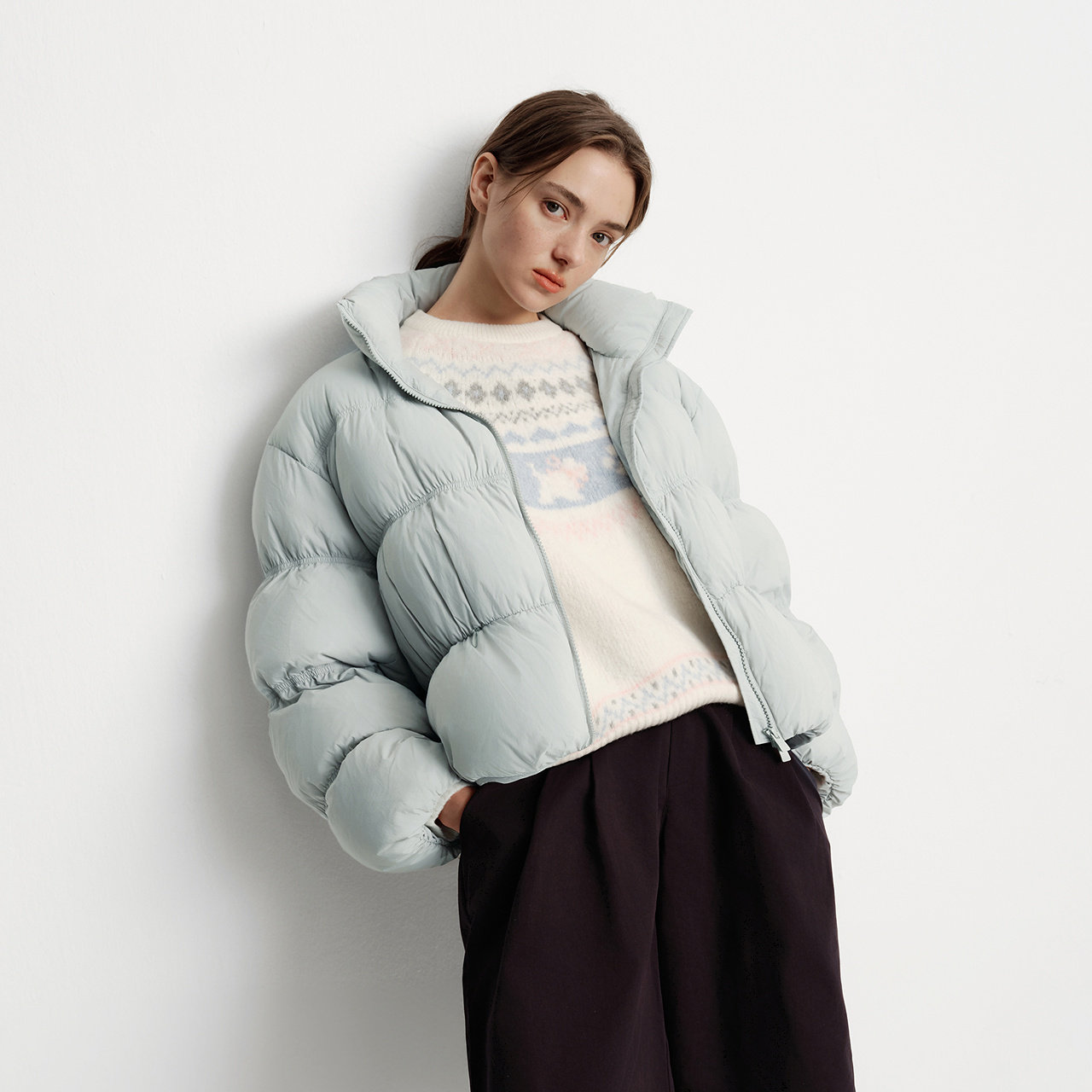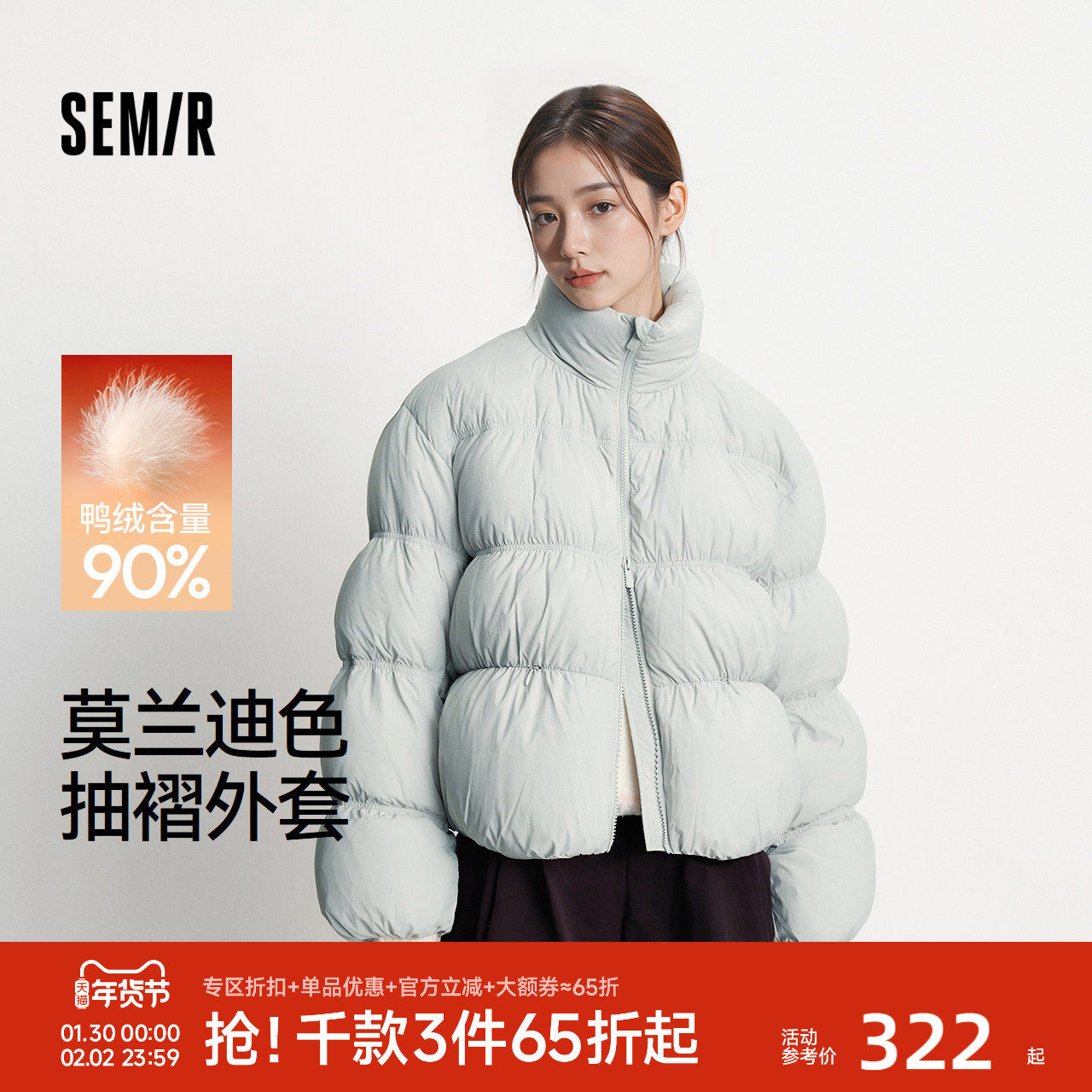 📚 森马羽绒服女冬季90绒子oversize肌理立领2025新款慵懒温柔面包服