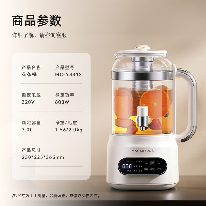 📚 迈卡罗MC-YS312养生壶多功能高硼硅玻璃花茶壶3L大容量分离式煮茶