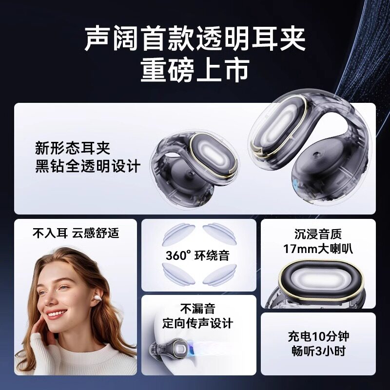 📚 声阔耳夹式蓝牙耳机不入耳无线挂耳式运动户外长续航久戴不痛C30i