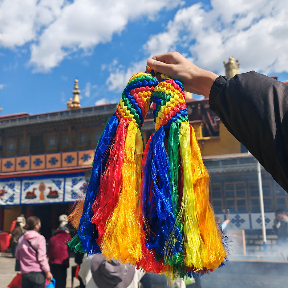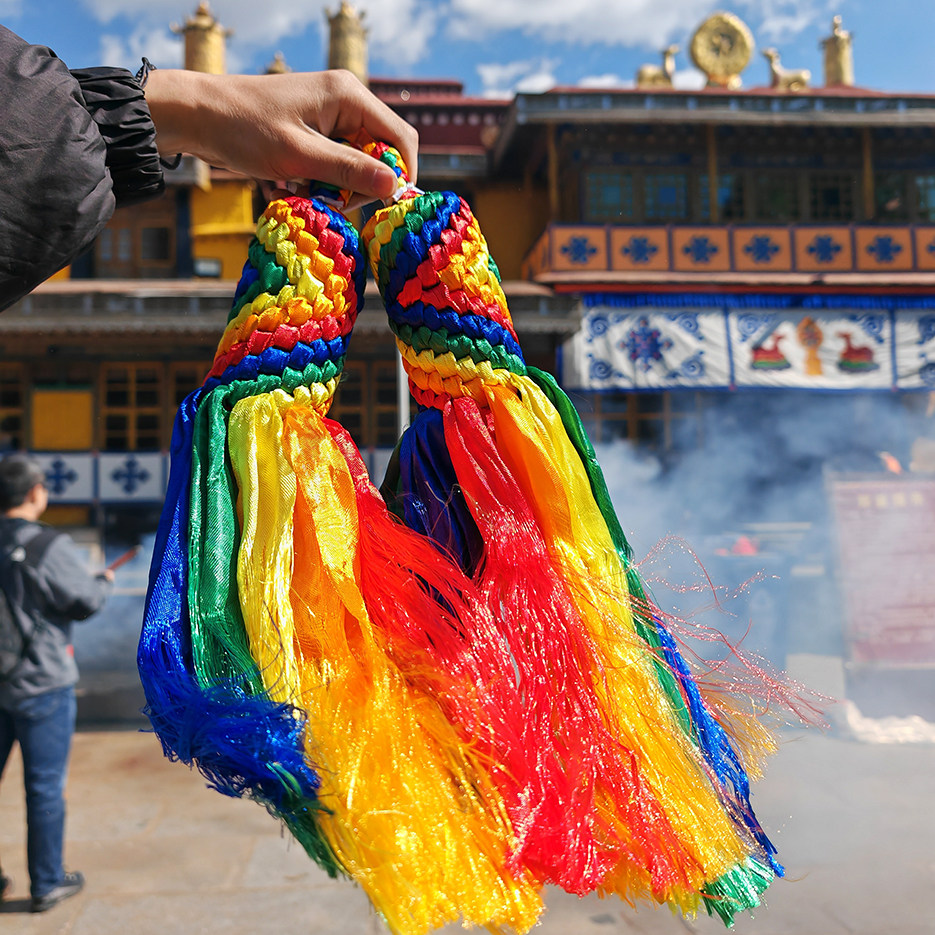 📚 西藏扎基请购 大号五色哈达编金刚结挂饰 手工编织门挂装饰吉祥结