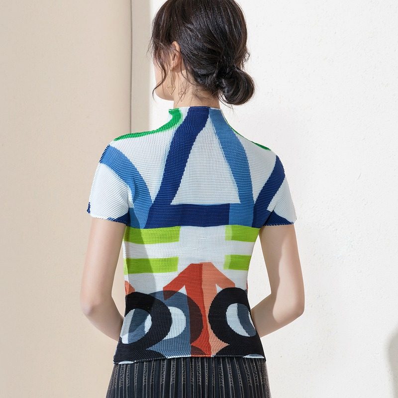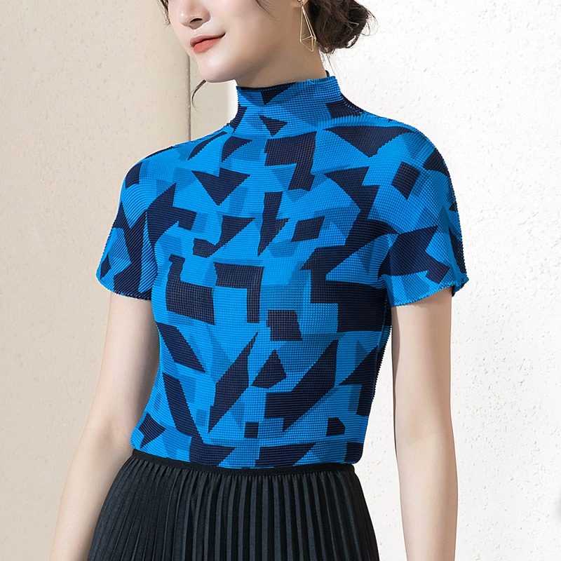 📚 PY女装 日本褶衣上衣女夏季新款三宅褶皱一生高领薄打底衣T恤女装