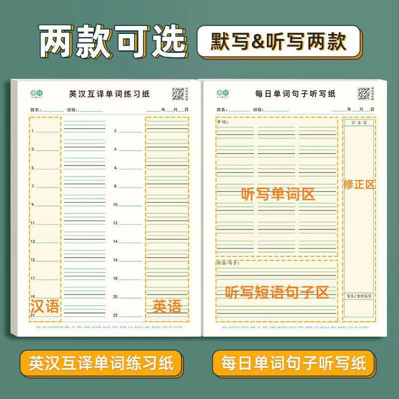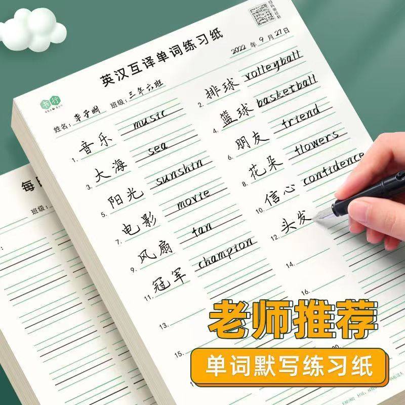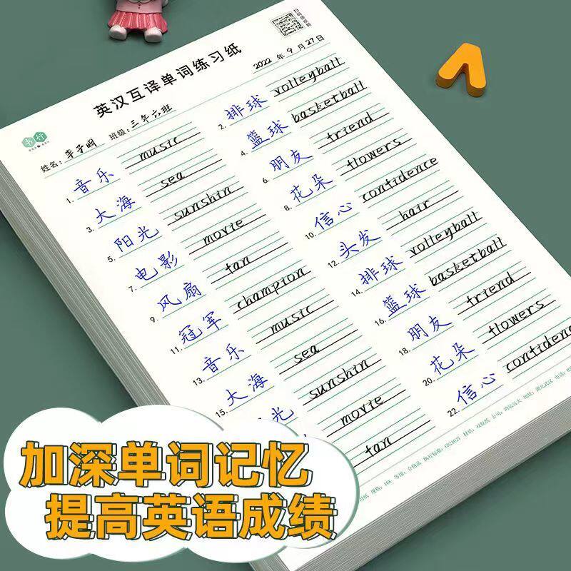 📚 小学生英汉互译练习纸每日单词句子听写纸三四五六年级英语默写本