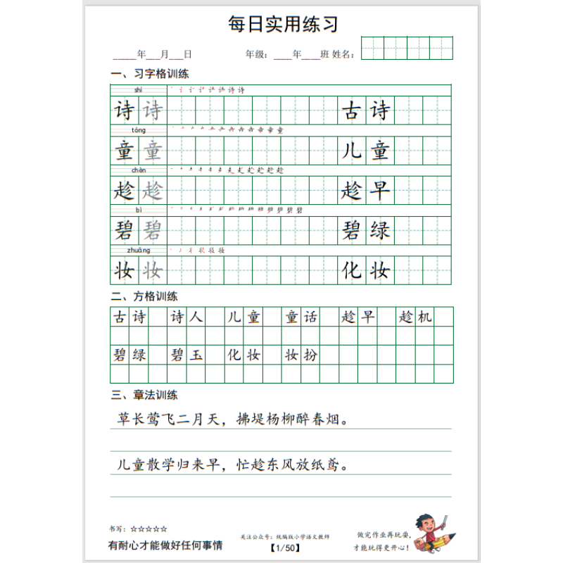 📚 一二三四五六年级上下册写字表方格习字格章法练习字贴部编人教版二年级下课本同步练字贴每日打卡O款训练