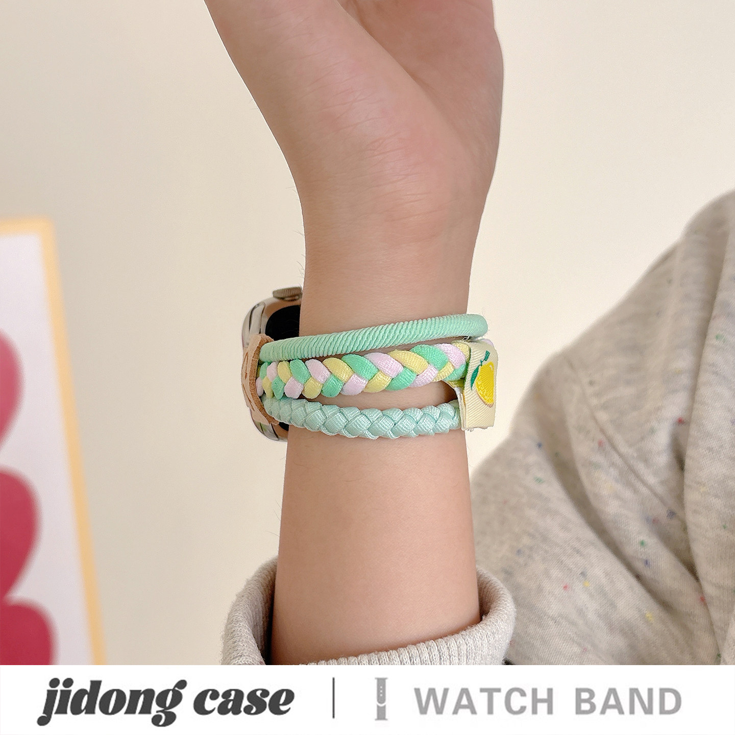 📚 适用applewatchS11/10可爱线条小狗弹力发圈表带苹果手表ultra3/2款女闺蜜iwatch9/8/7/6新款休闲百搭SE腕带
