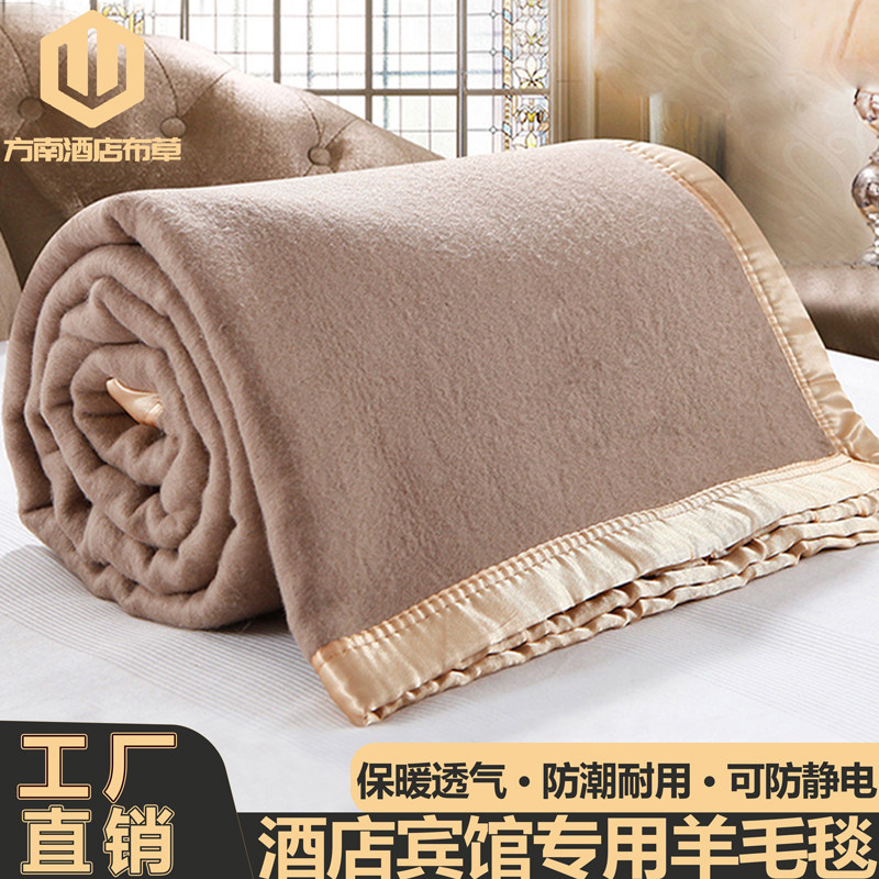 📚 酒店宾馆专用加厚床上新西兰纯色羊毛毯保暖羊绒毯布草驼色床盖毯