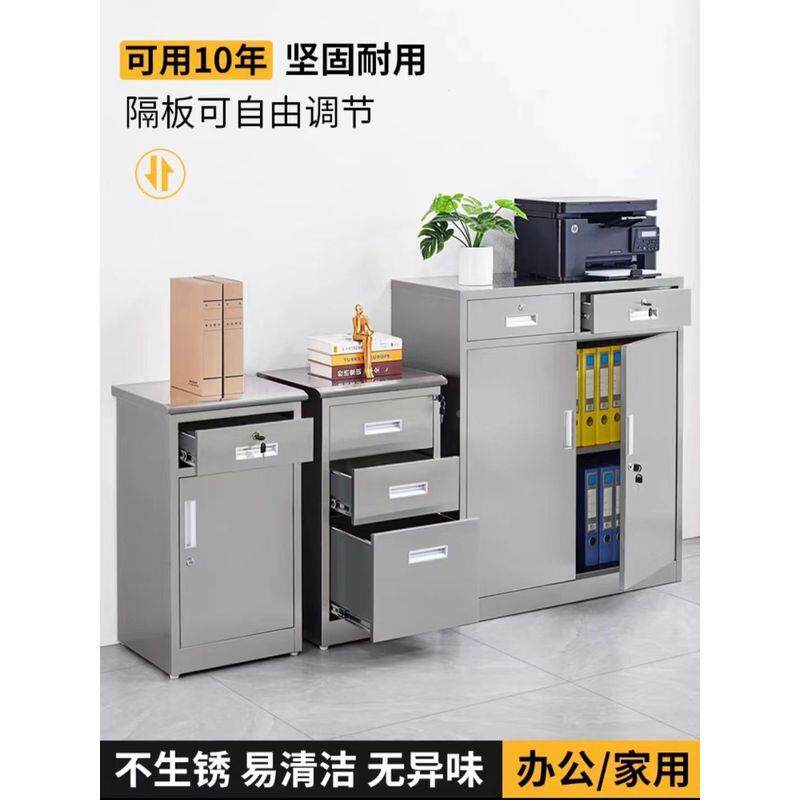 📚 不锈桌下81271文件柜柜柜子卧室家用小床头柜小钢带锁靠边型储物