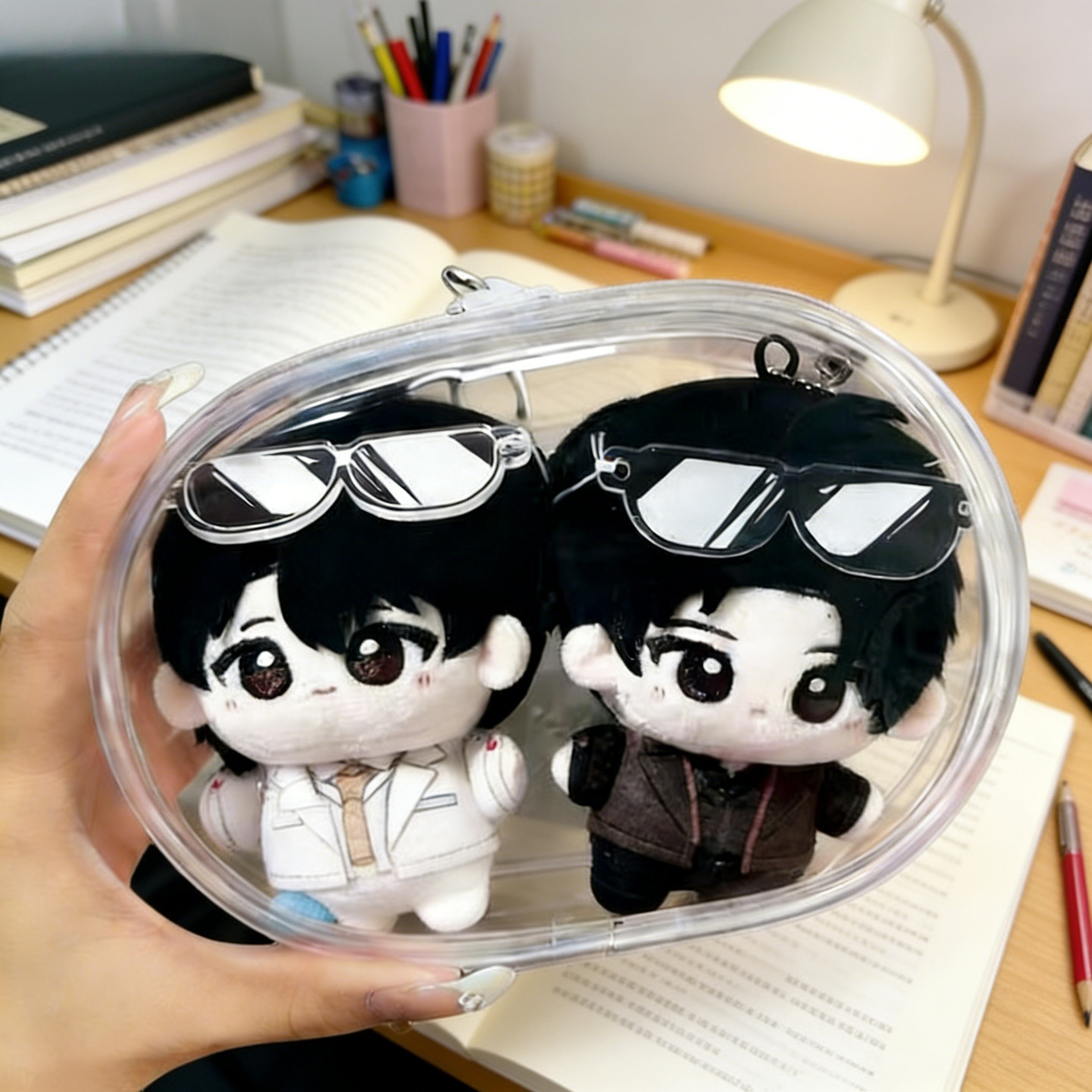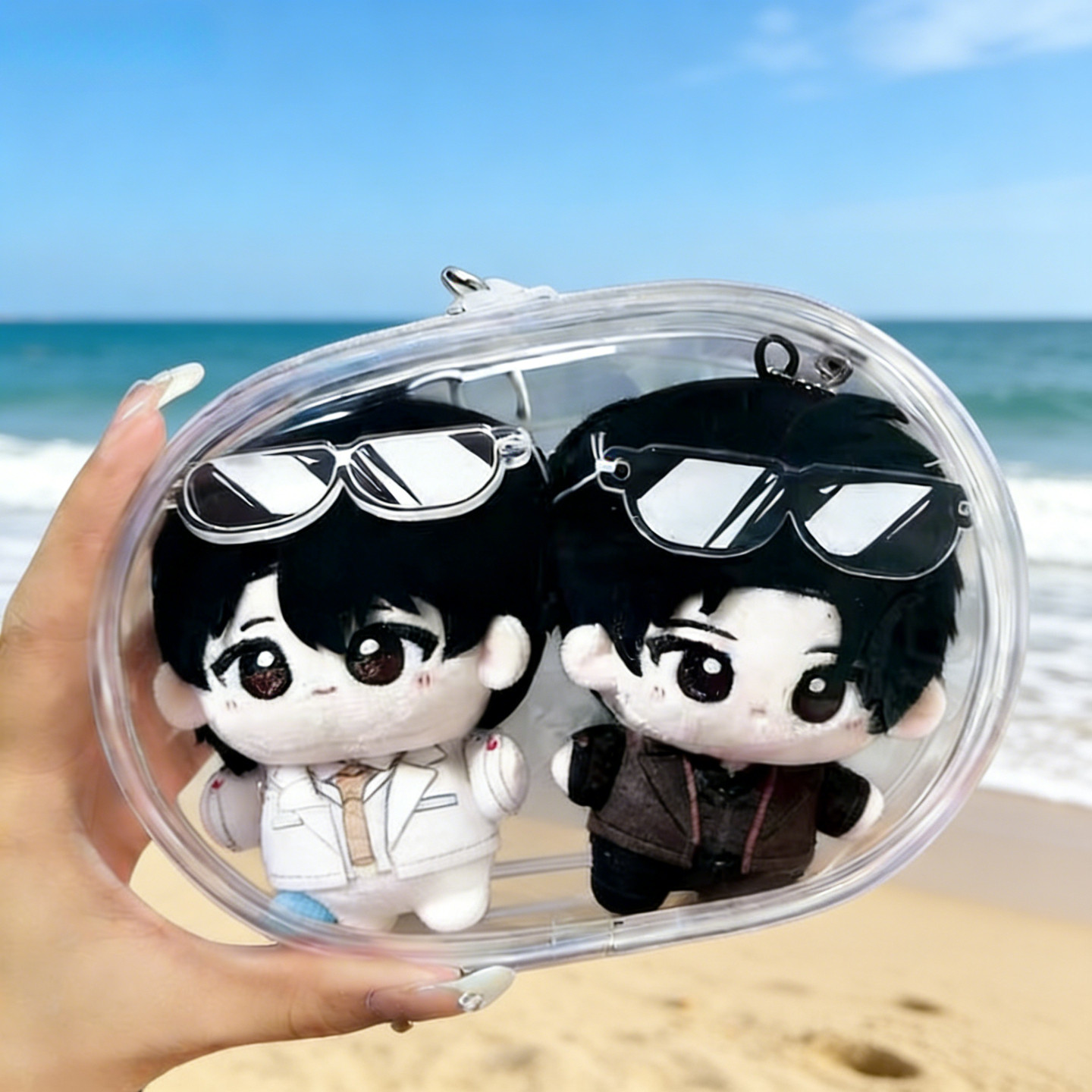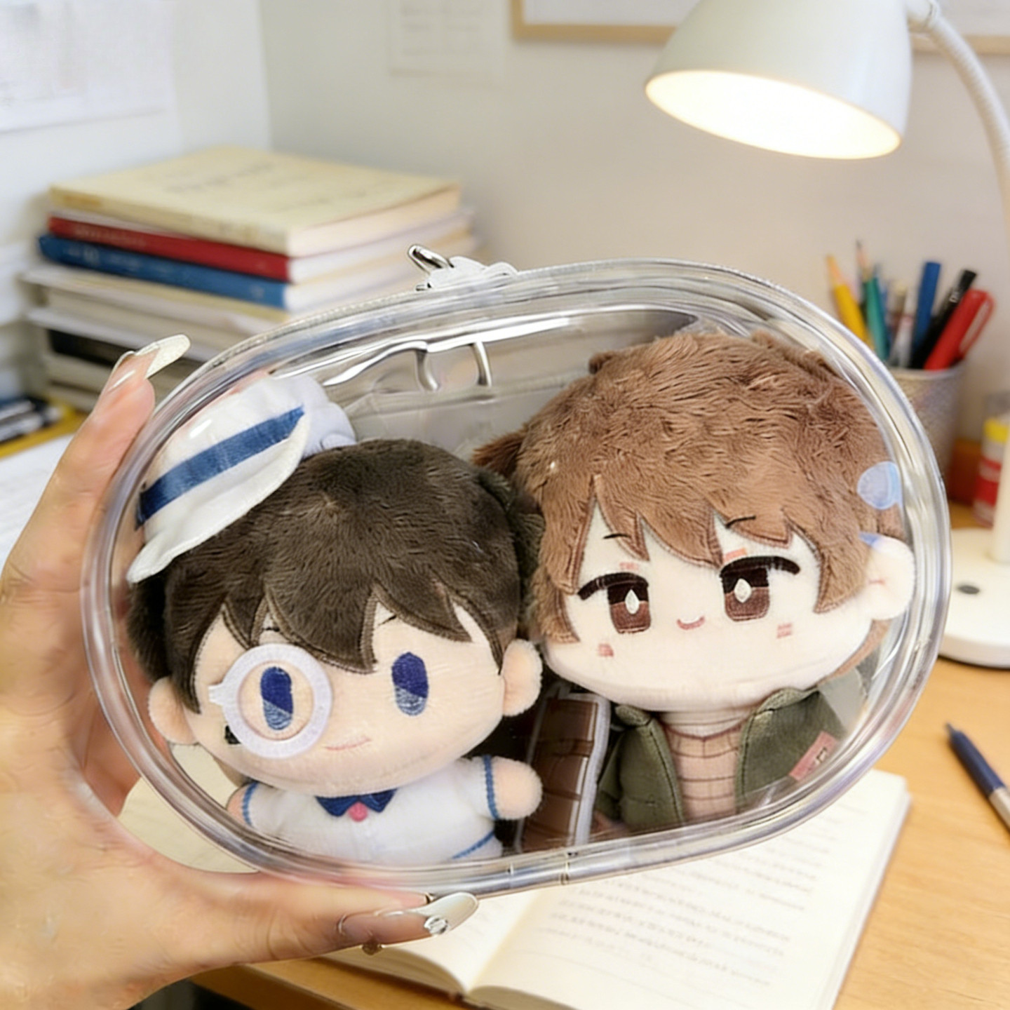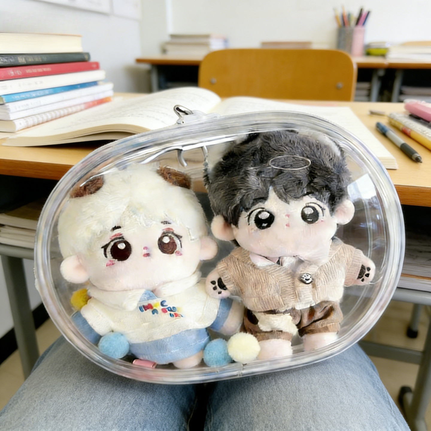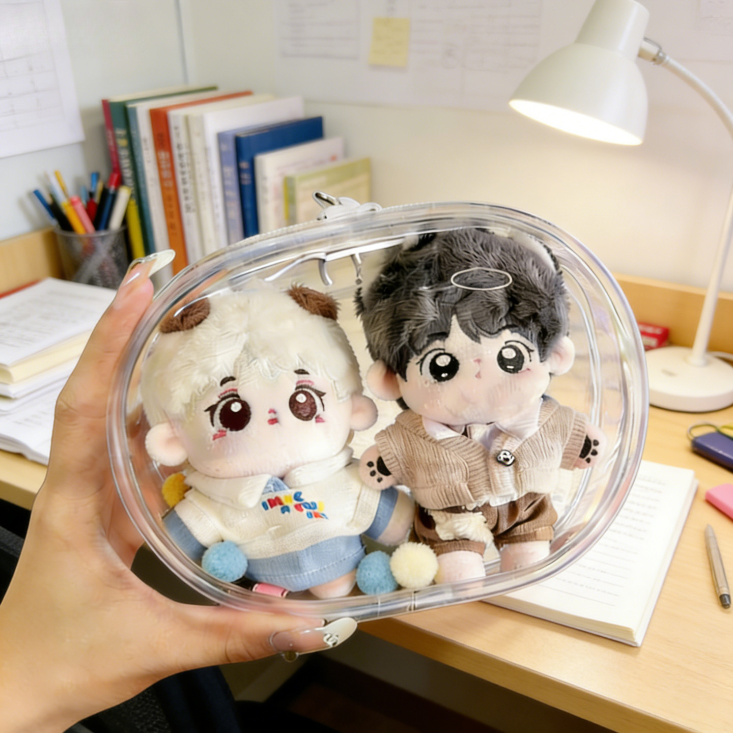 📚 10厘米双人娃包双仓透明团子两只棉花娃娃收纳包努努晒娃包痛包袋