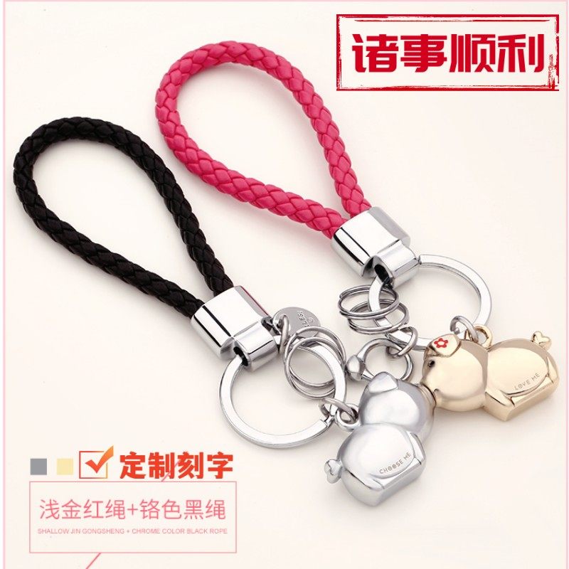 📚 情侣小众钥匙扣一对卡通挂饰女生亲嘴接吻猪挂件车钥匙扣刻字礼物