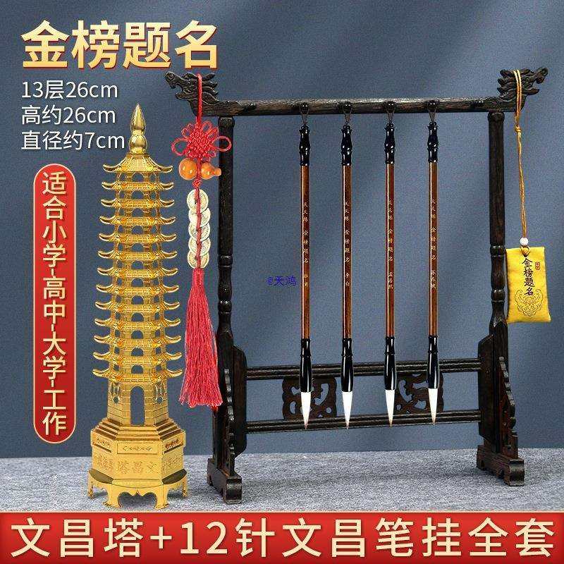 📚 文昌笔摆件四支金榜题名毛笔开过挂饰2025光笔架文房四宝木质挂件