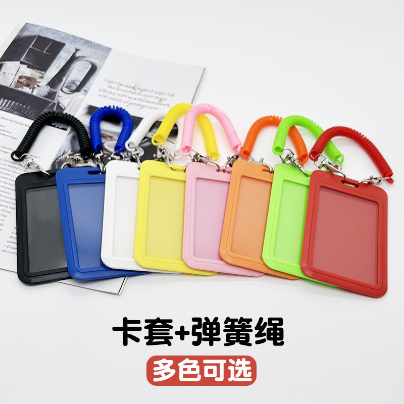 📚 纯色简约卡套弹簧绳防丢学生校园卡饭卡幼儿园接送卡门禁卡饭卡公交地铁乘车卡保护套硬壳工厂牌证件套